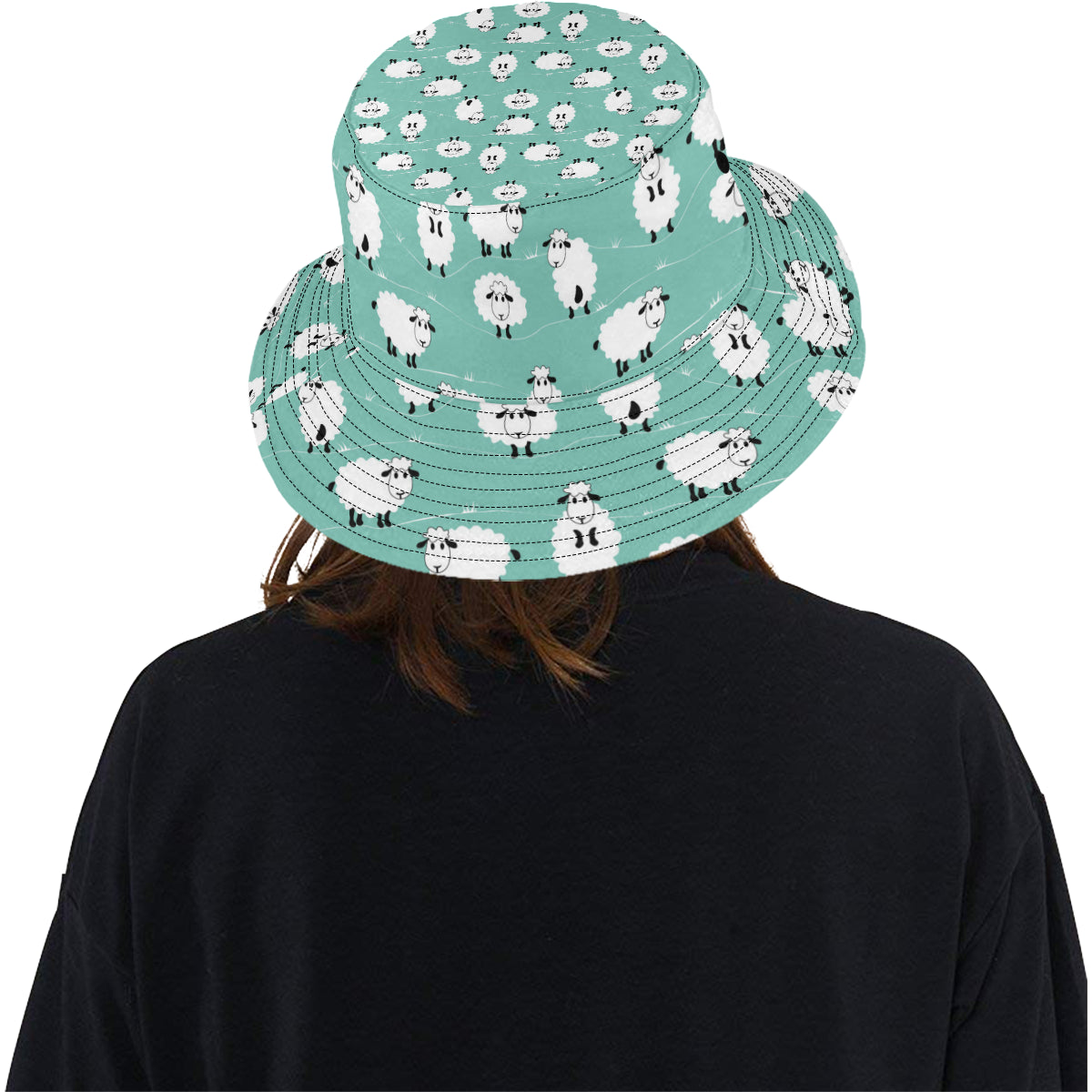 Cute sheep green background Unisex Bucket Hat is a uniqued design and limited item. It made to order, hand printed, and sewn with love in our factory.