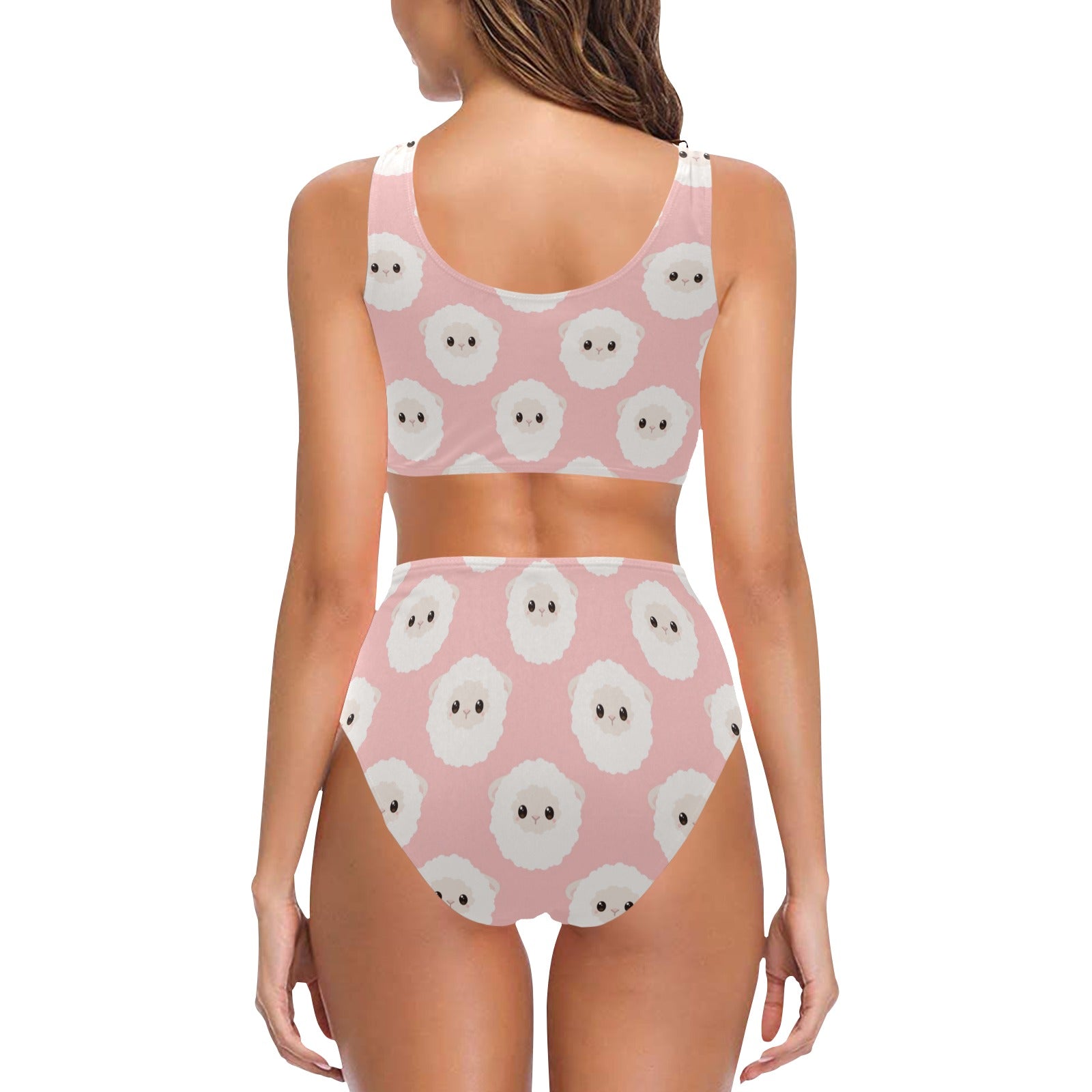 Cute sheep pattern Chest Bowknot High Waisted Bikini Swimsuit