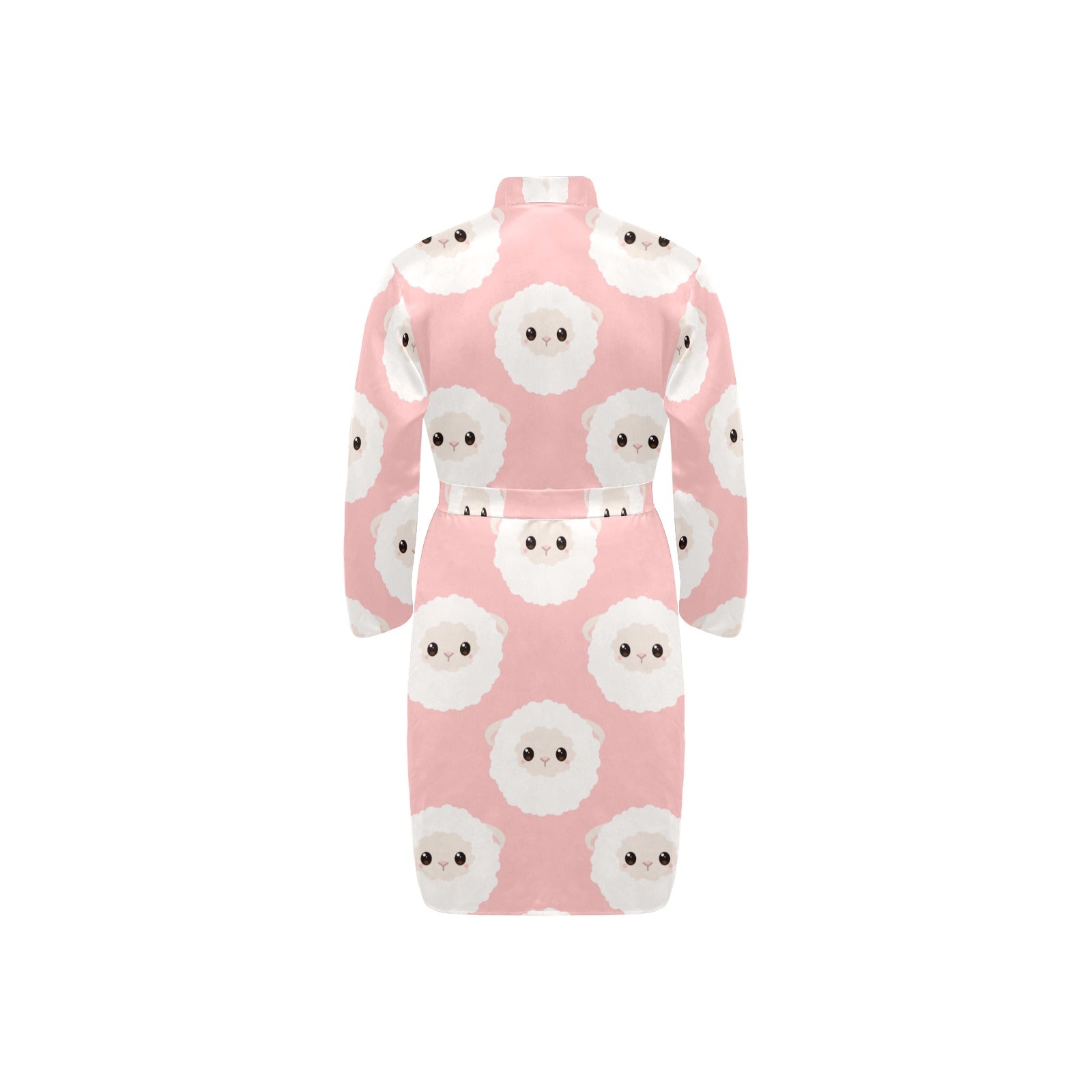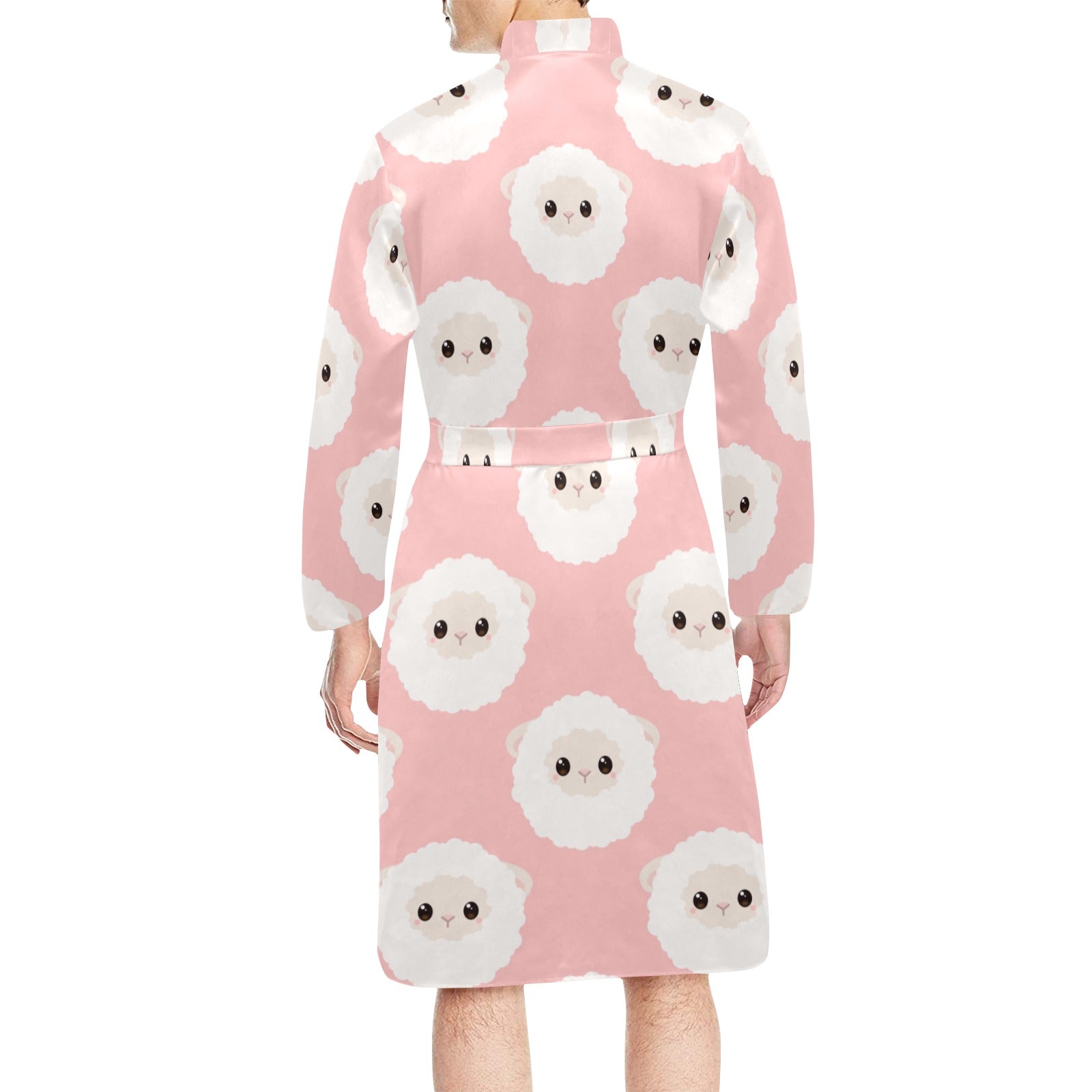 Cute sheep pattern Men's Long Sleeve Belted Night Robe