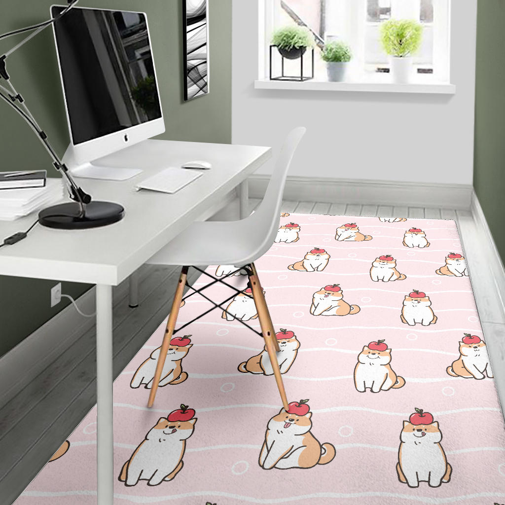 Cute Shiba Inu Dog Apple pattern Area Rug is a uniqued design and limited item. It made to order, hand printed, and sewn with love in our factory.