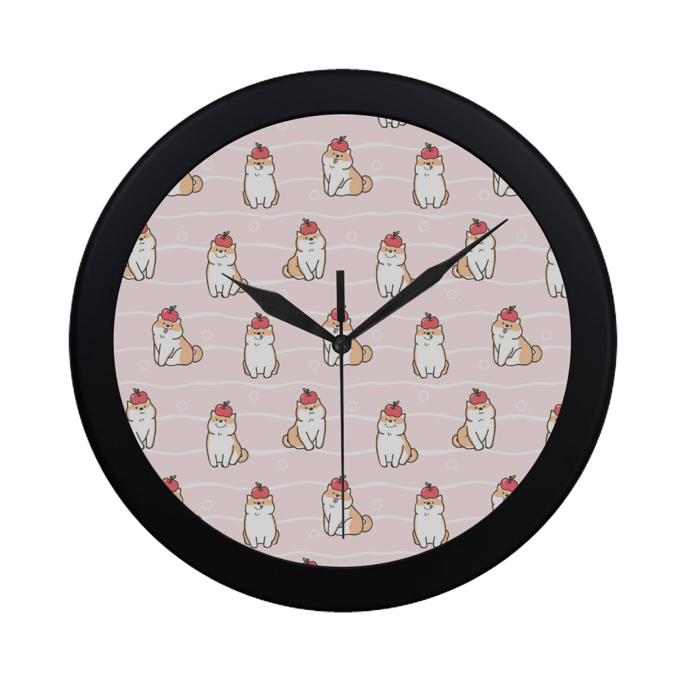 Cute Shiba Inu Dog Apple pattern Elegant Black Wall Clock