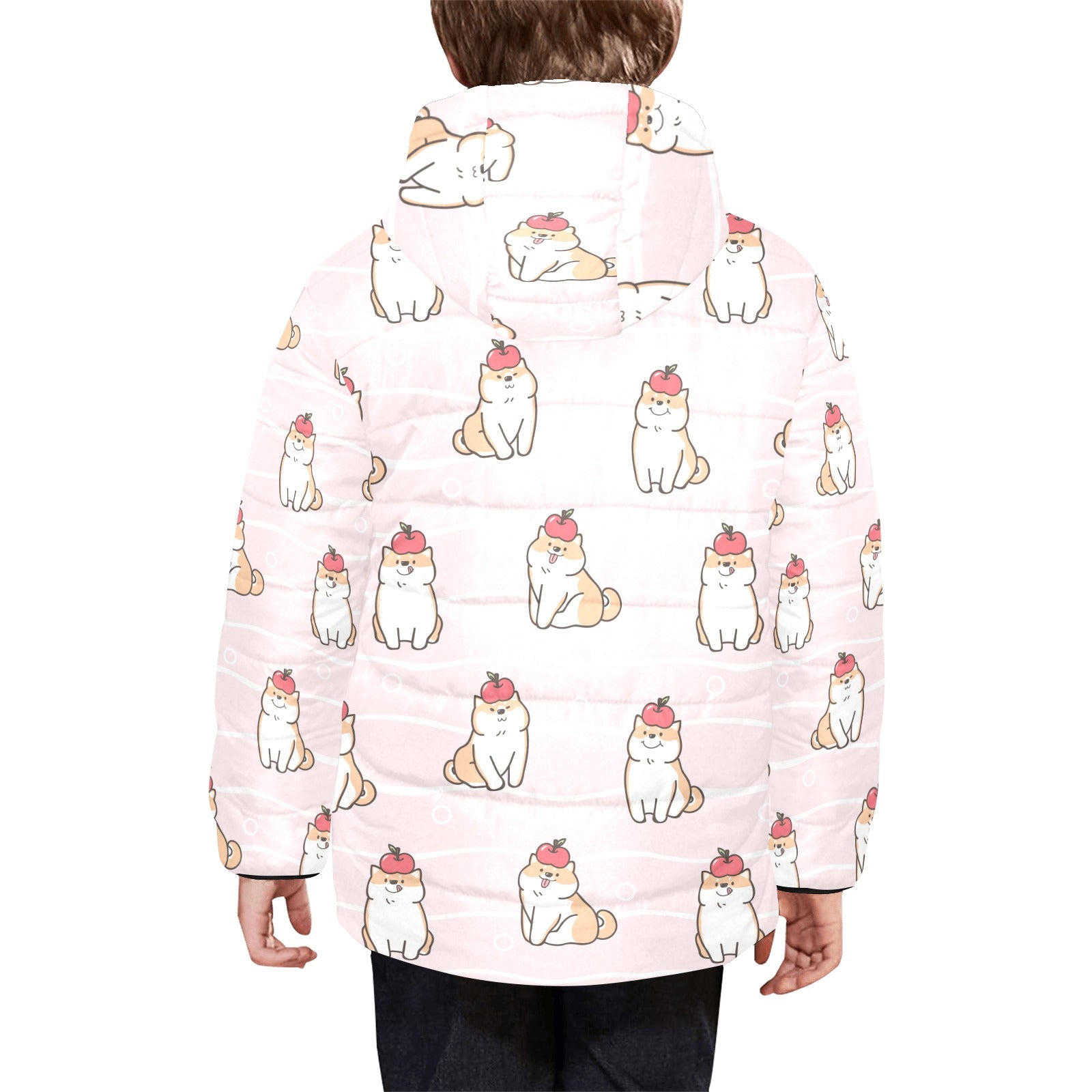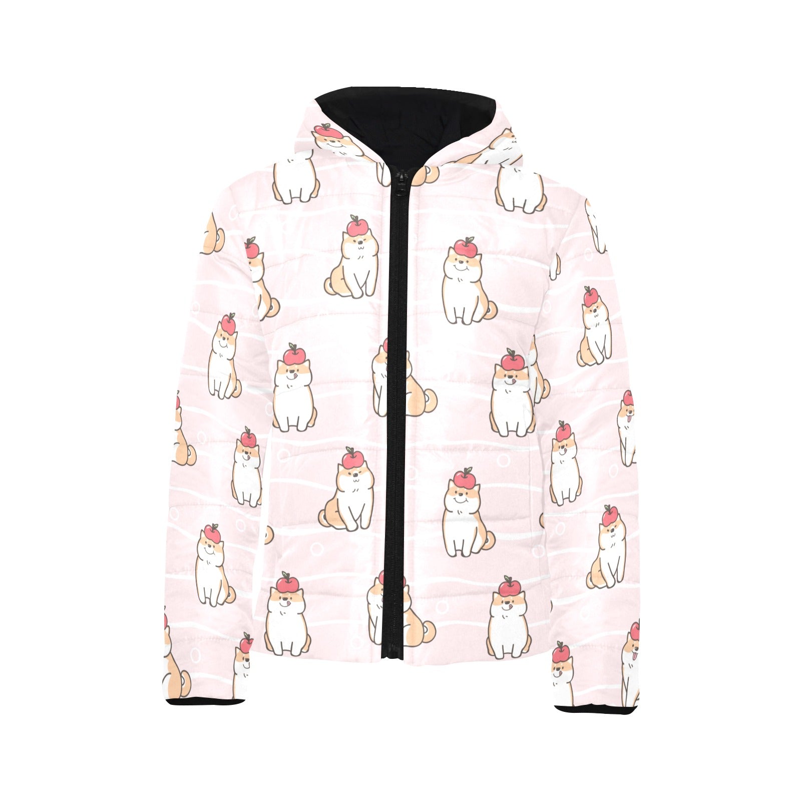 Cute Shiba Inu Dog Apple pattern Kids' Boys' Girls' Padded Hooded Jacket