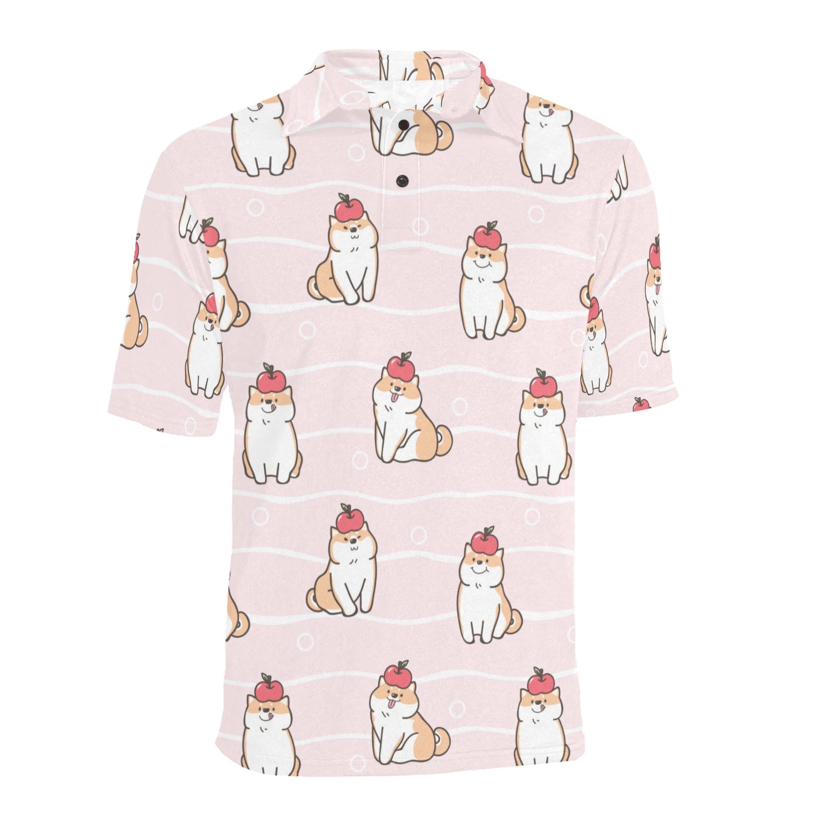 Cute Shiba Inu Dog Apple pattern Men's All Over Print Polo Shirt