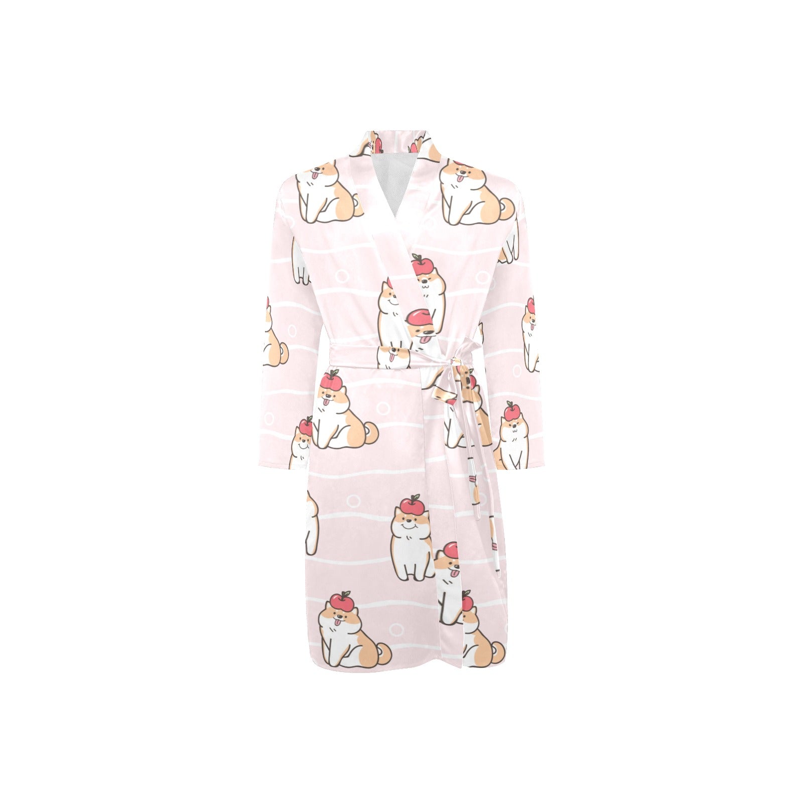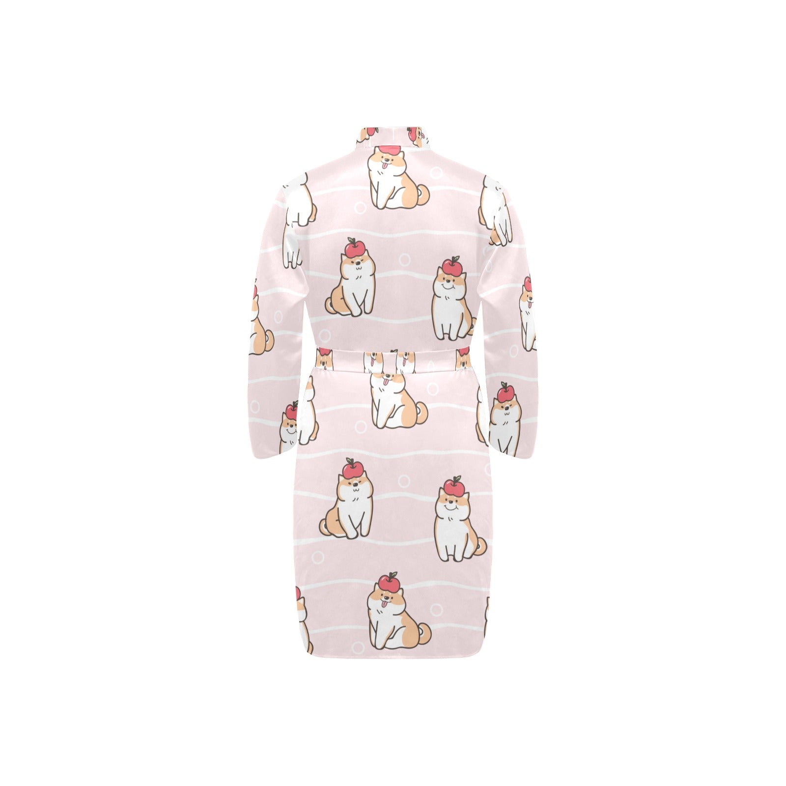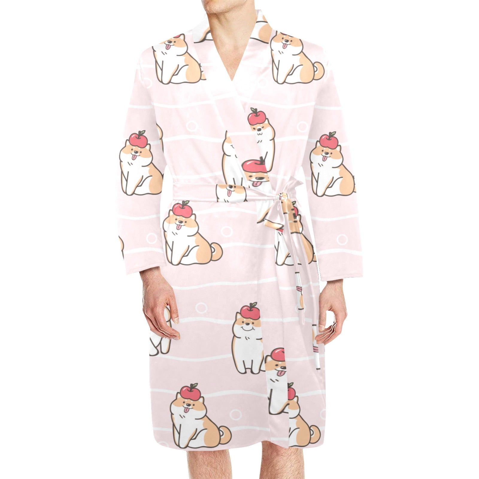 Cute Shiba Inu Dog Apple pattern Men's Long Sleeve Belted Night Robe