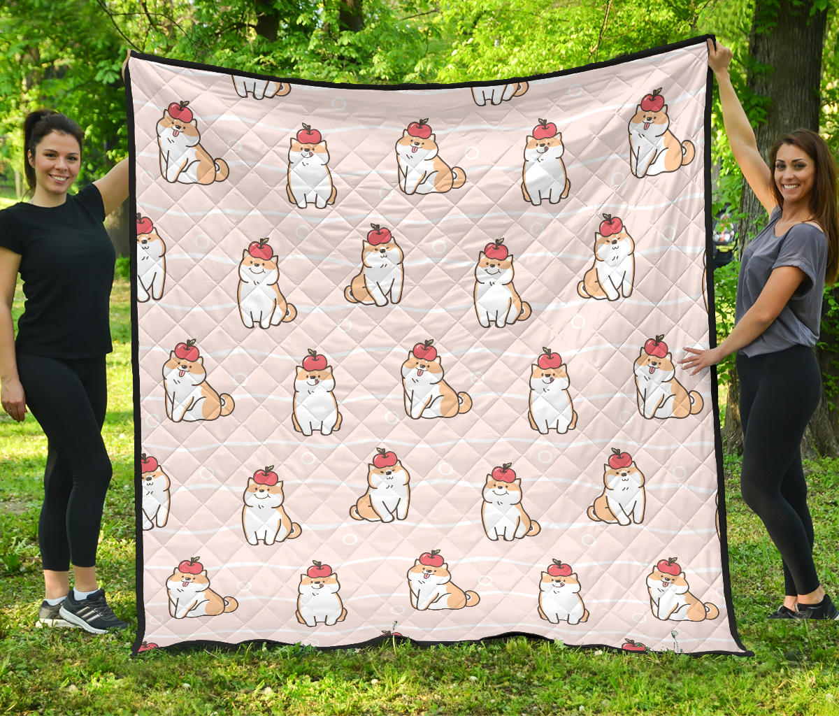 Cute Shiba Inu Dog Apple Pattern Premium Quilt is a uniqued design and limited item. It made to order, hand printed, and sewn with love in our factory.