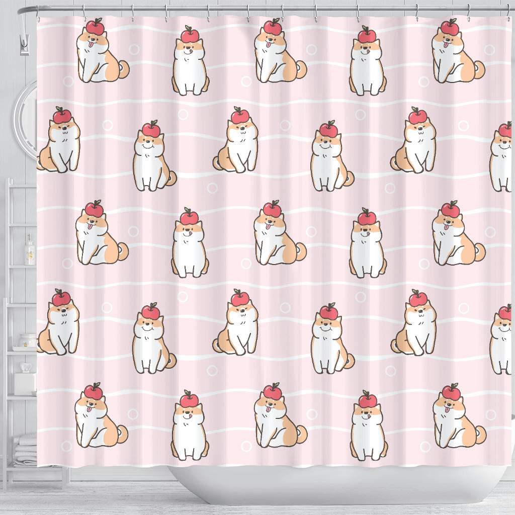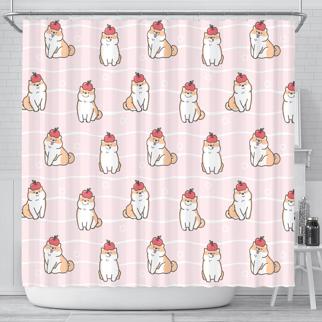 Cute Shiba Inu Dog Apple Pattern Shower Curtain Fulfilled In US