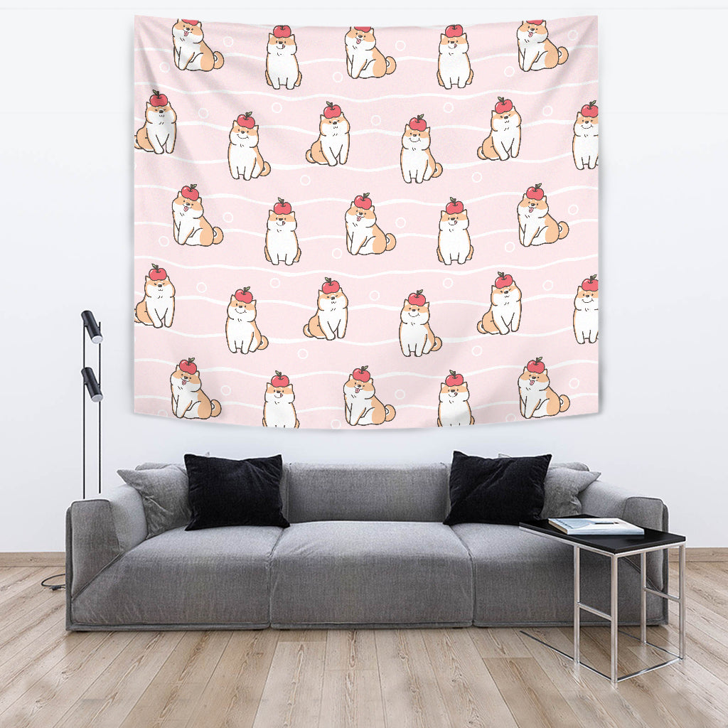 Cute Shiba Inu Dog Apple pattern Tapestry is a uniqued design and limited item. It made to order, hand printed, and sewn with love in our factory.