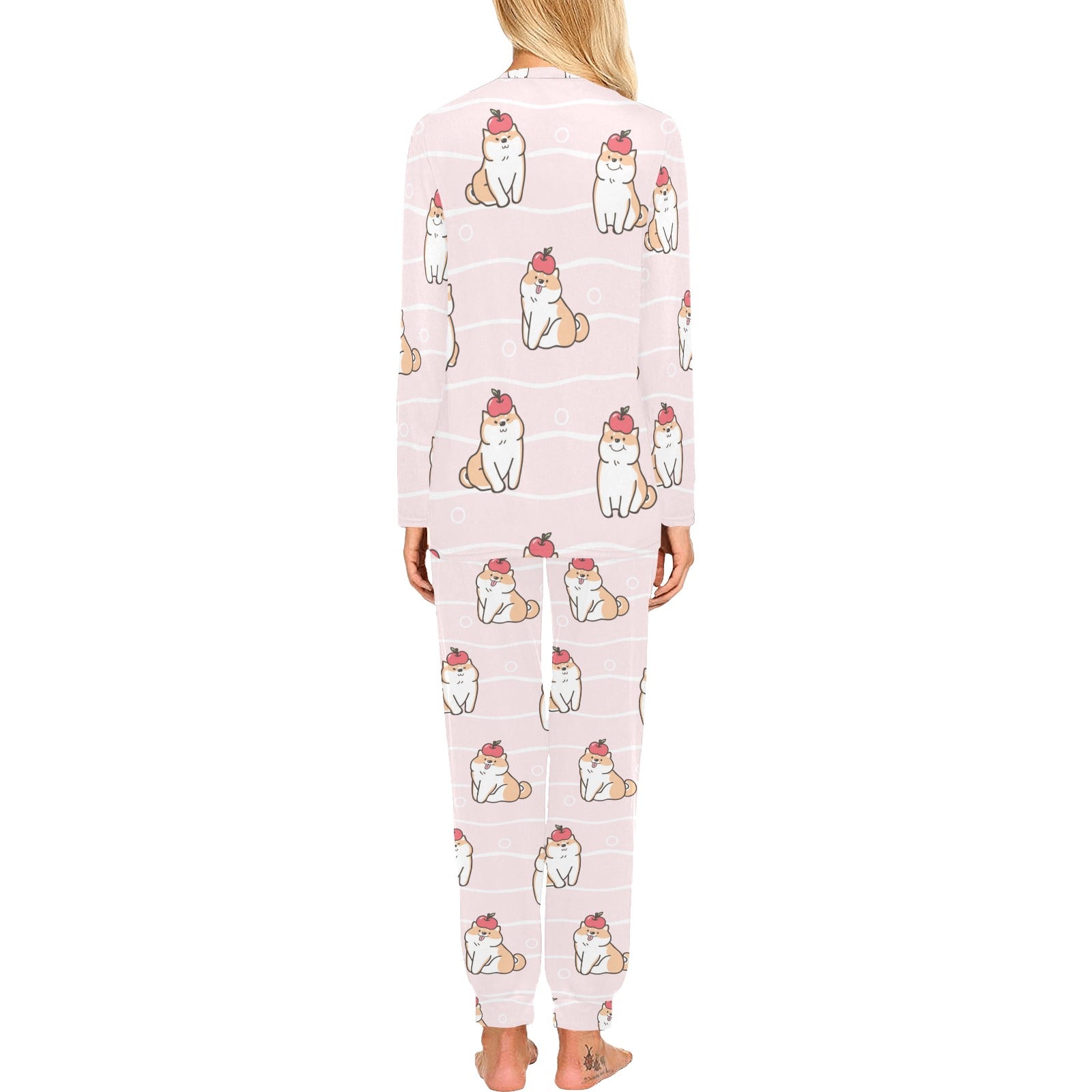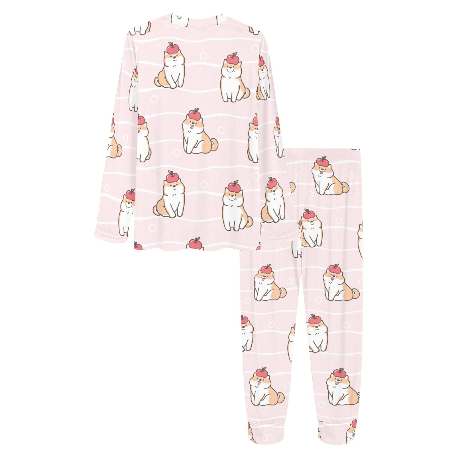 Cute Shiba Inu Dog Apple pattern Women's All Over Print Pajama Set