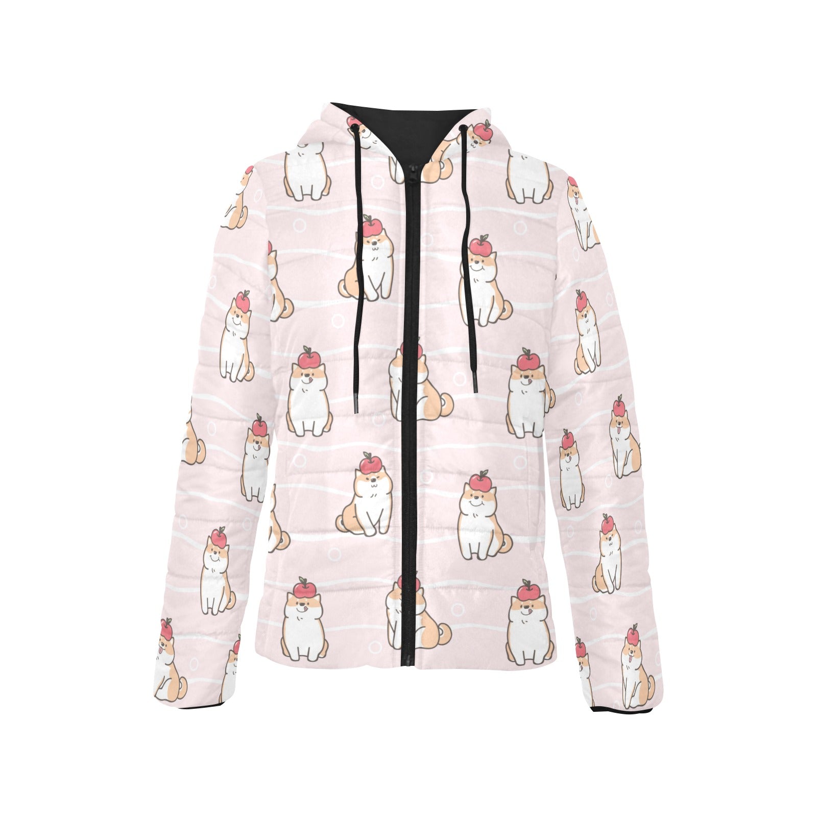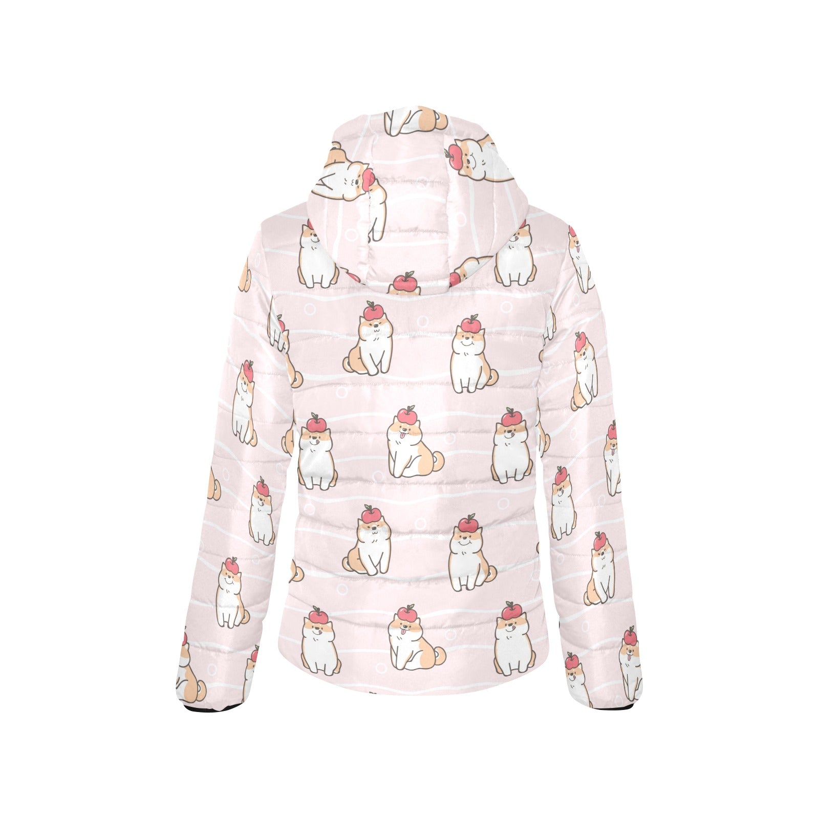 Cute Shiba Inu Dog Apple pattern Women's Padded Hooded Jacket