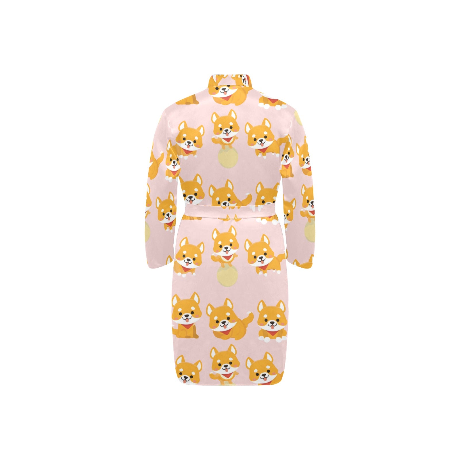 Cute shiba inu dog pattern Men's Long Sleeve Belted Night Robe