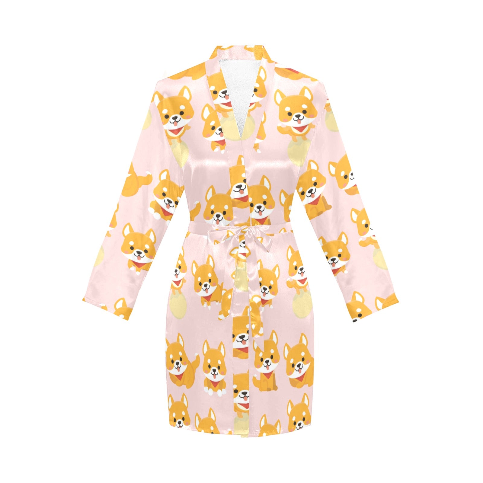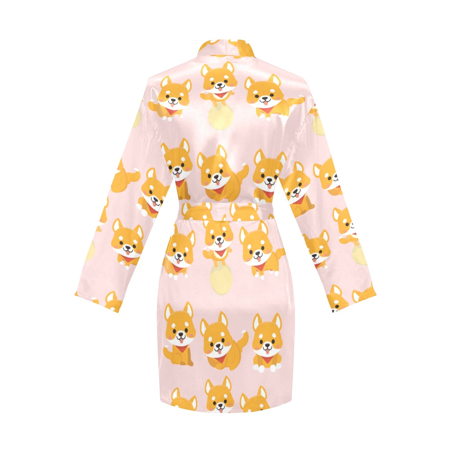 Cute shiba inu dog pattern Women's Long Sleeve Belted Night Robe
