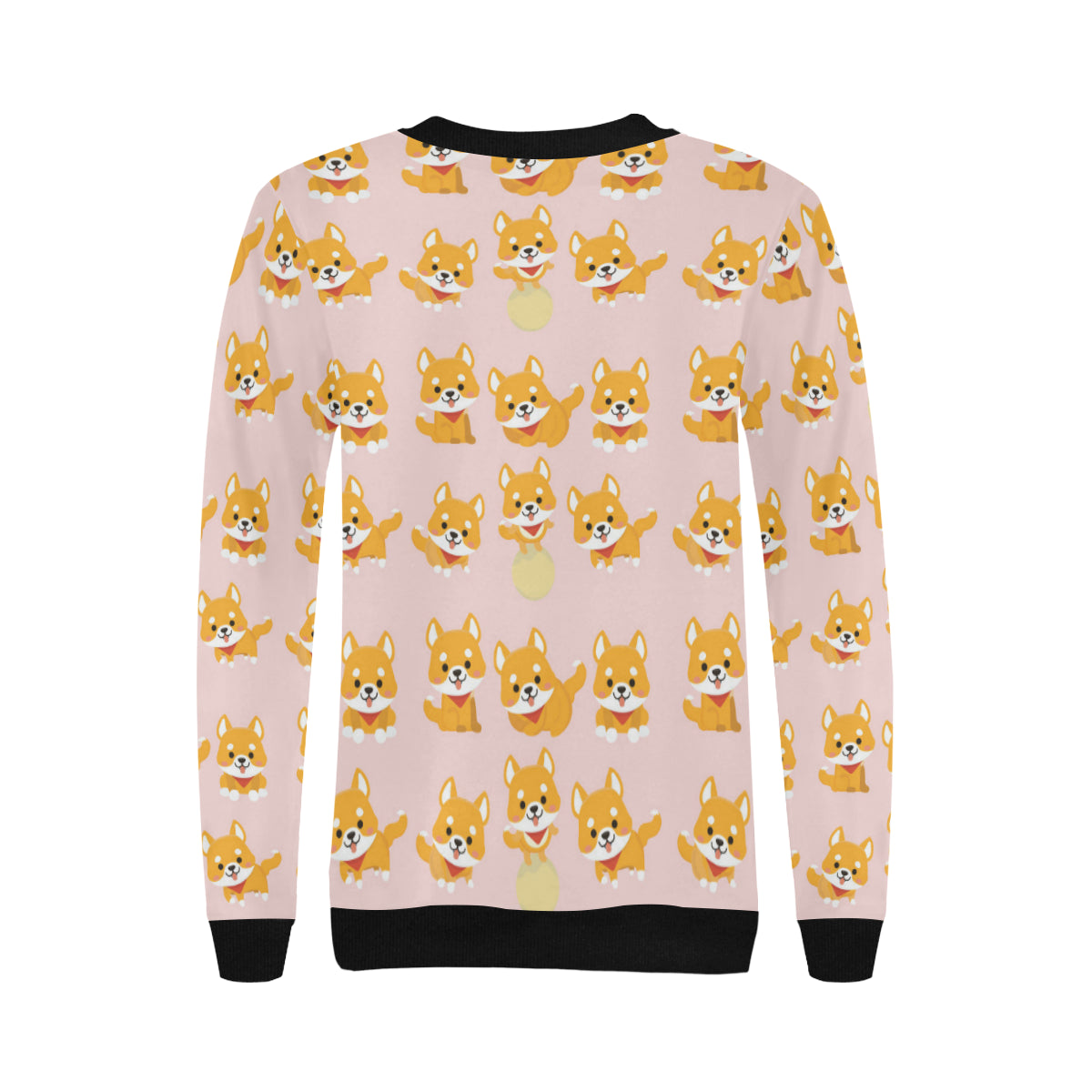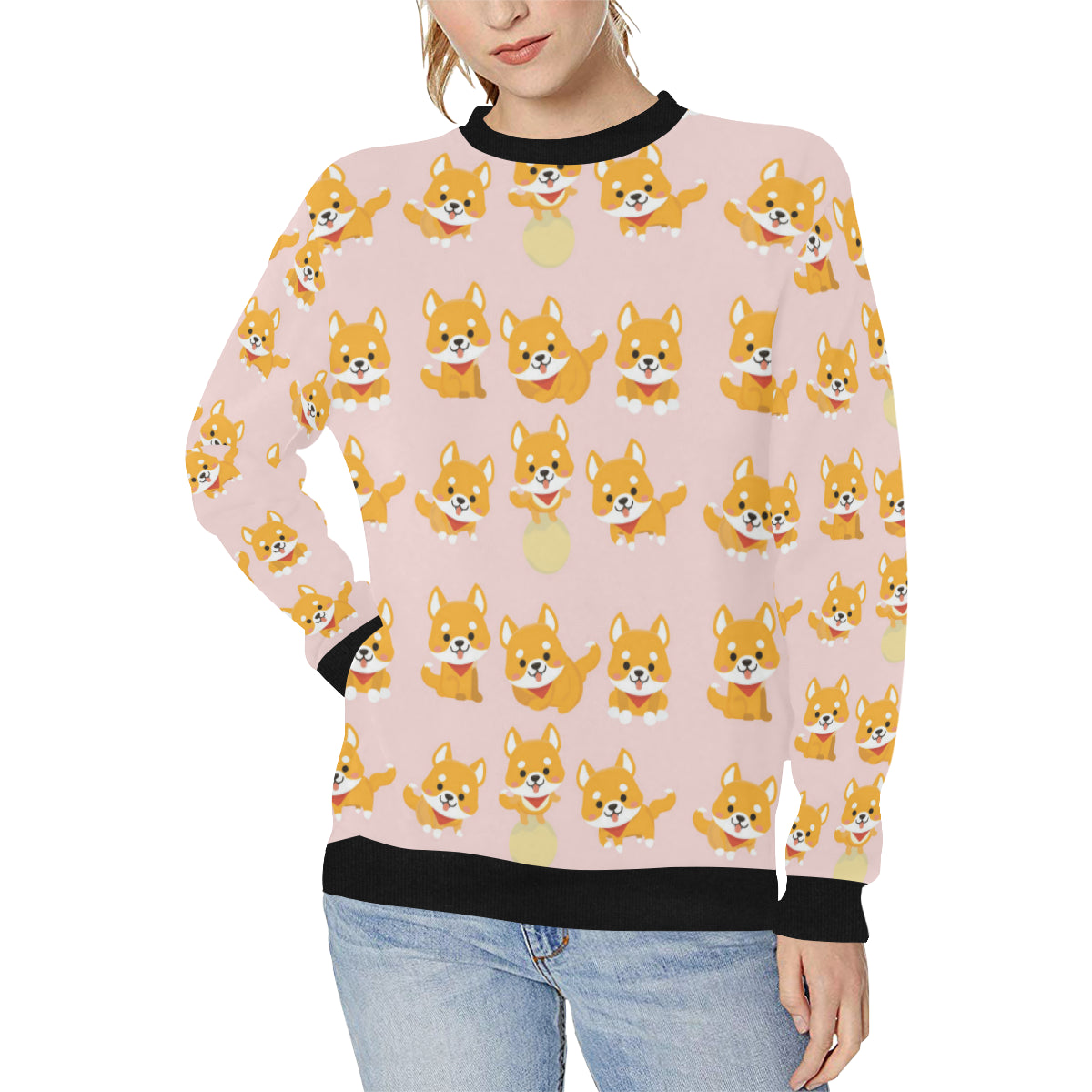 Cute shiba inu dog pattern Women's Crew Neck Sweatshirt