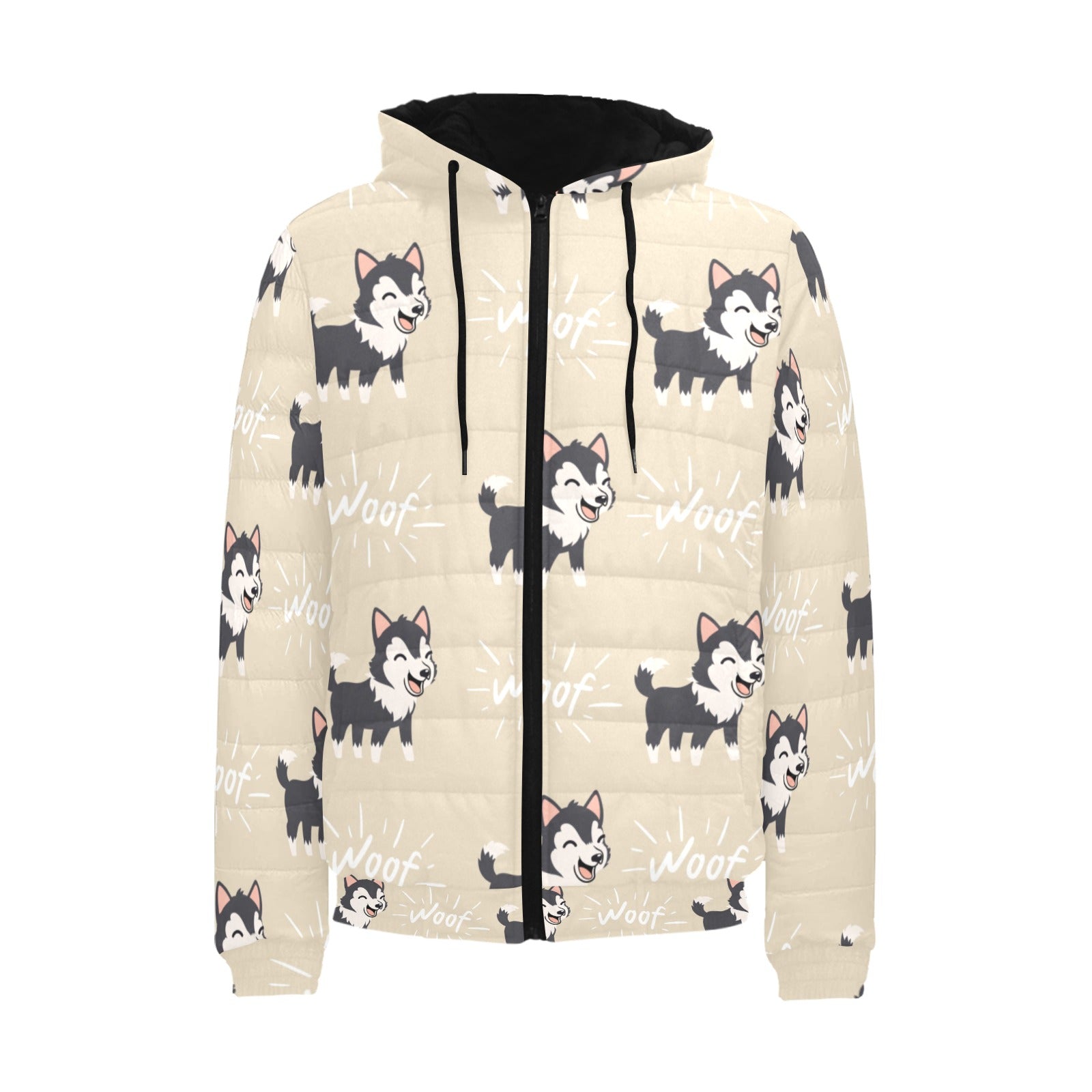 Cute Siberian Husky Men's Padded Hooded Jacket