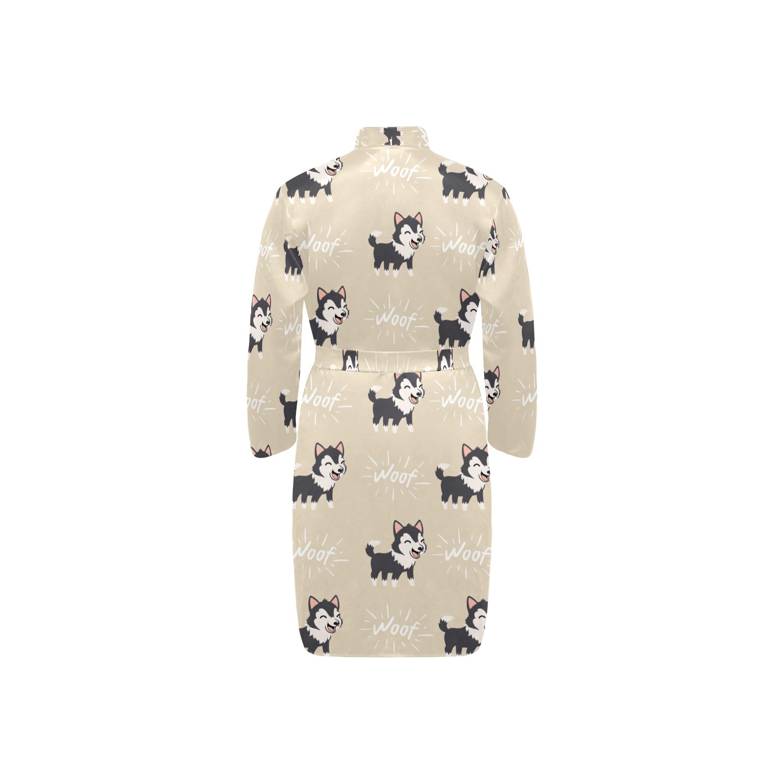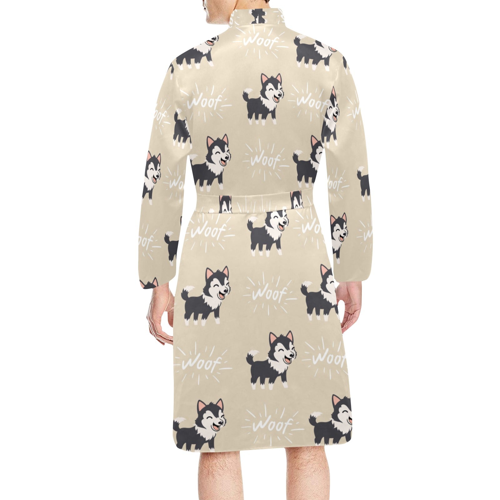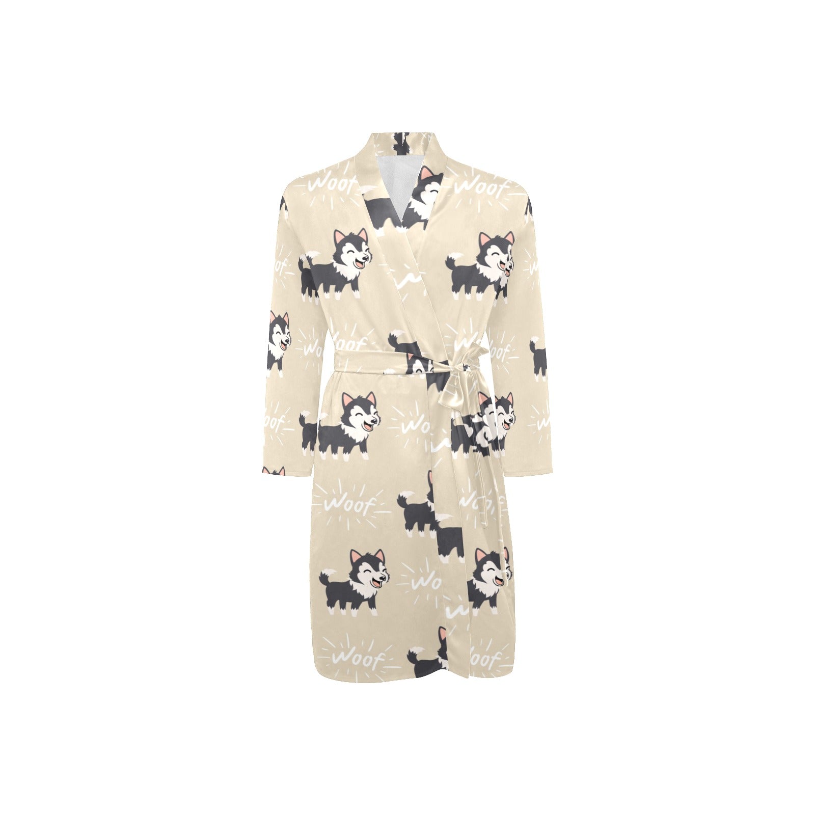 Cute Siberian Husky Men's Long Sleeve Belted Night Robe