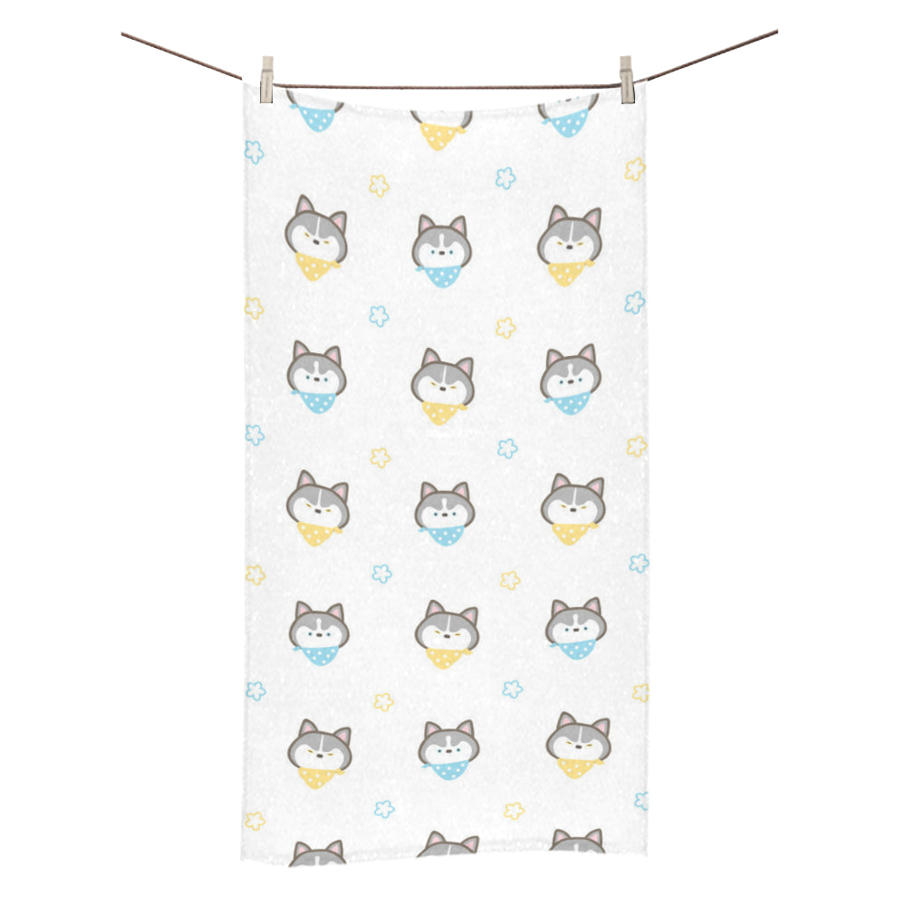 Cute Siberian Husky pattern Bath Towel 30"x56" is a uniqued design and limited item. It made to order, hand printed, and sewn with love in our factory.