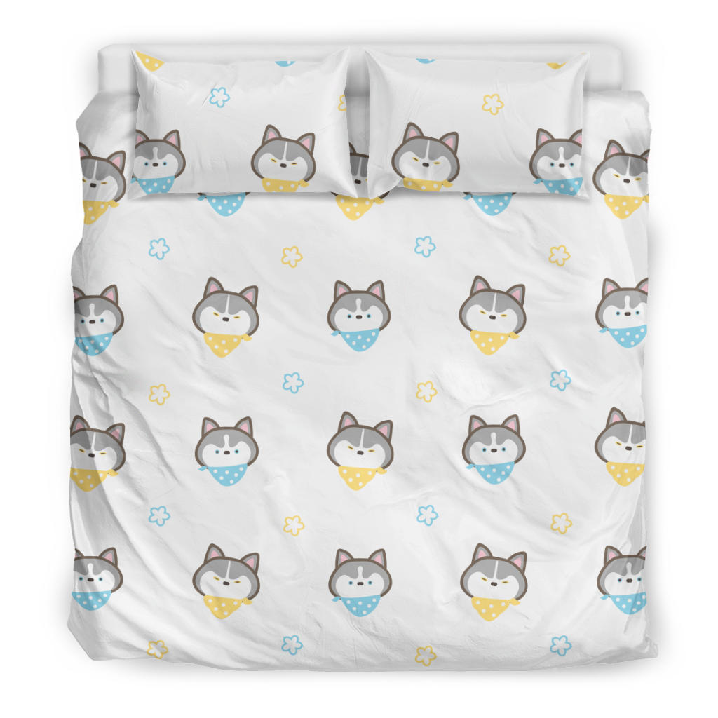 Cute Siberian Husky pattern Bedding Set is a uniqued design and limited item. It made to order, hand printed, and sewn with love in our factory.