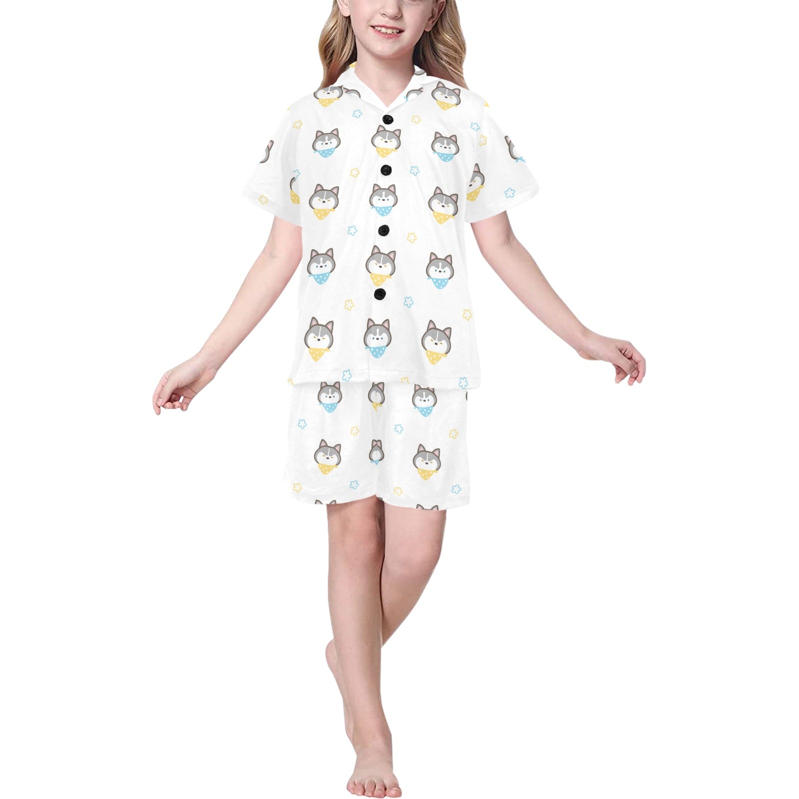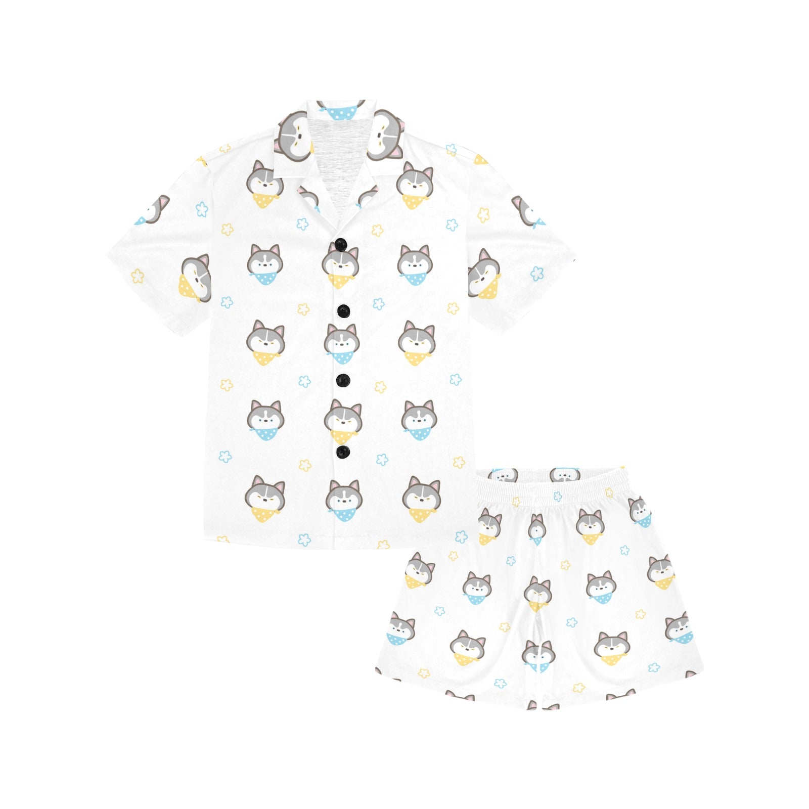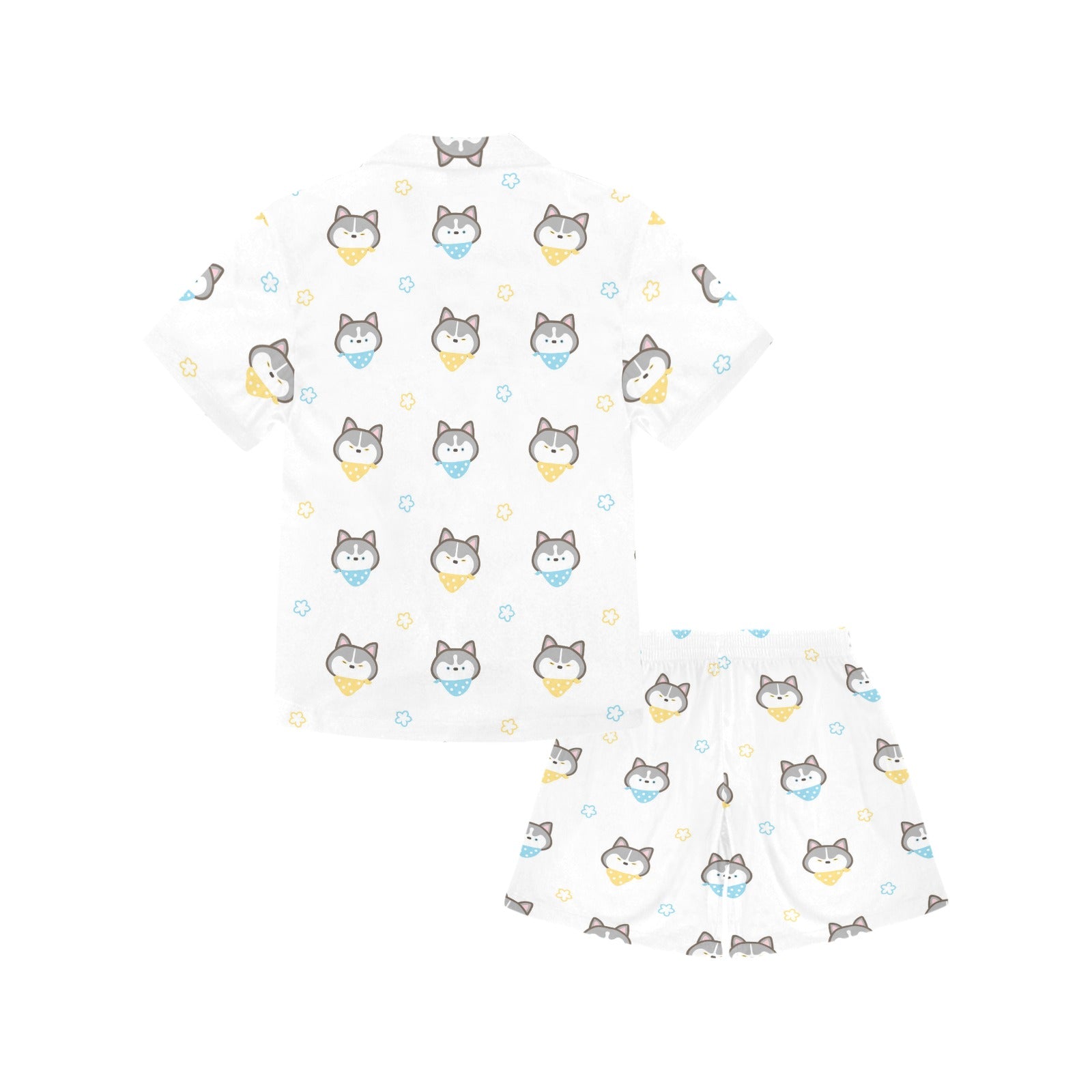 Cute Siberian Husky pattern Kids' Boys' Girls' V-Neck Short Pajama Set