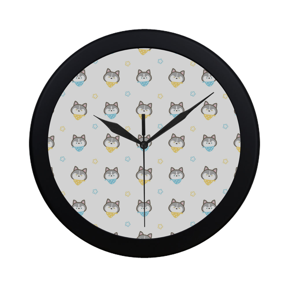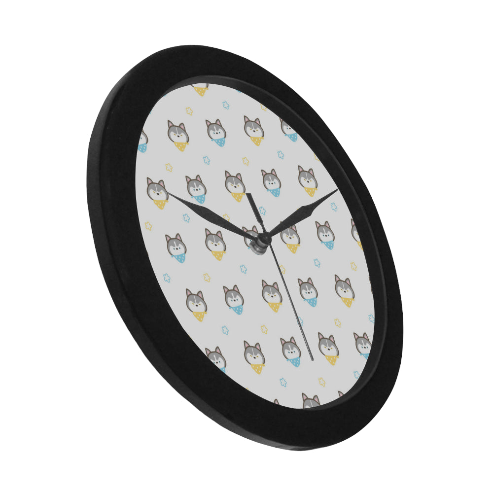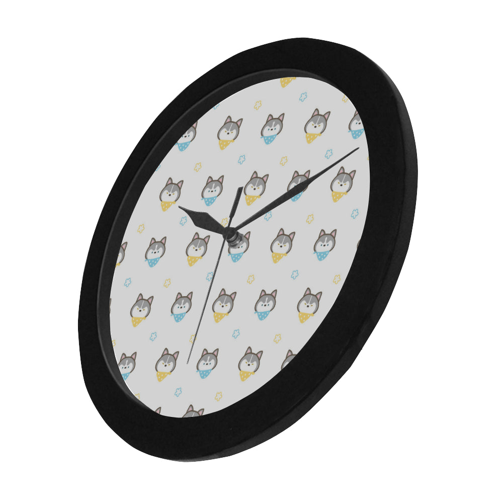 Cute Siberian Husky pattern Elegant Black Wall Clock