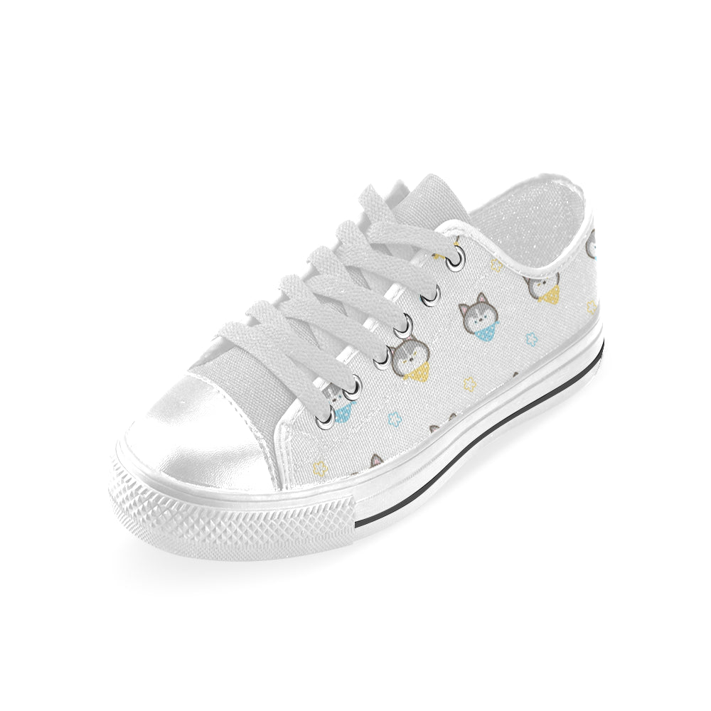 Cute Siberian Husky pattern Men's Low Top Shoes White