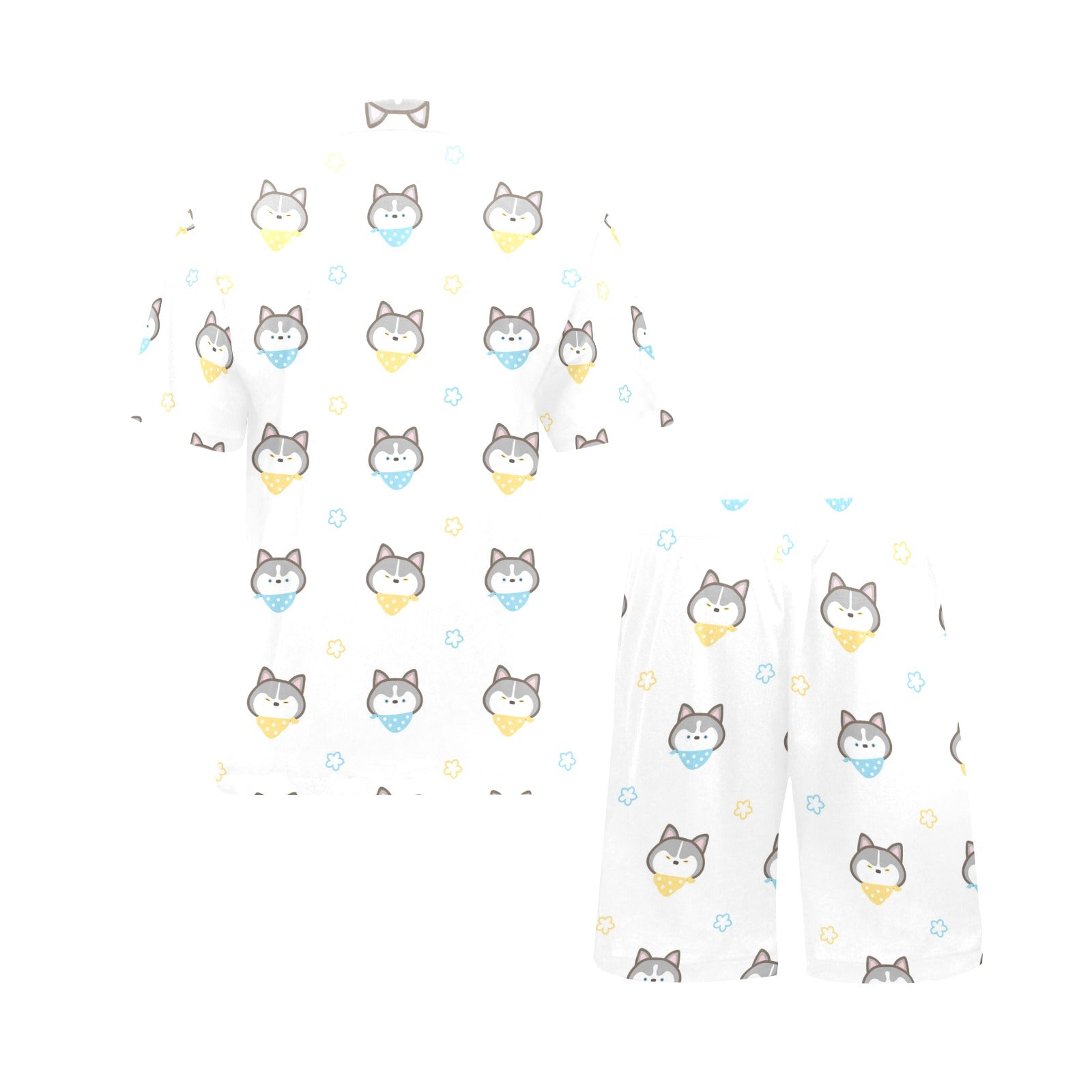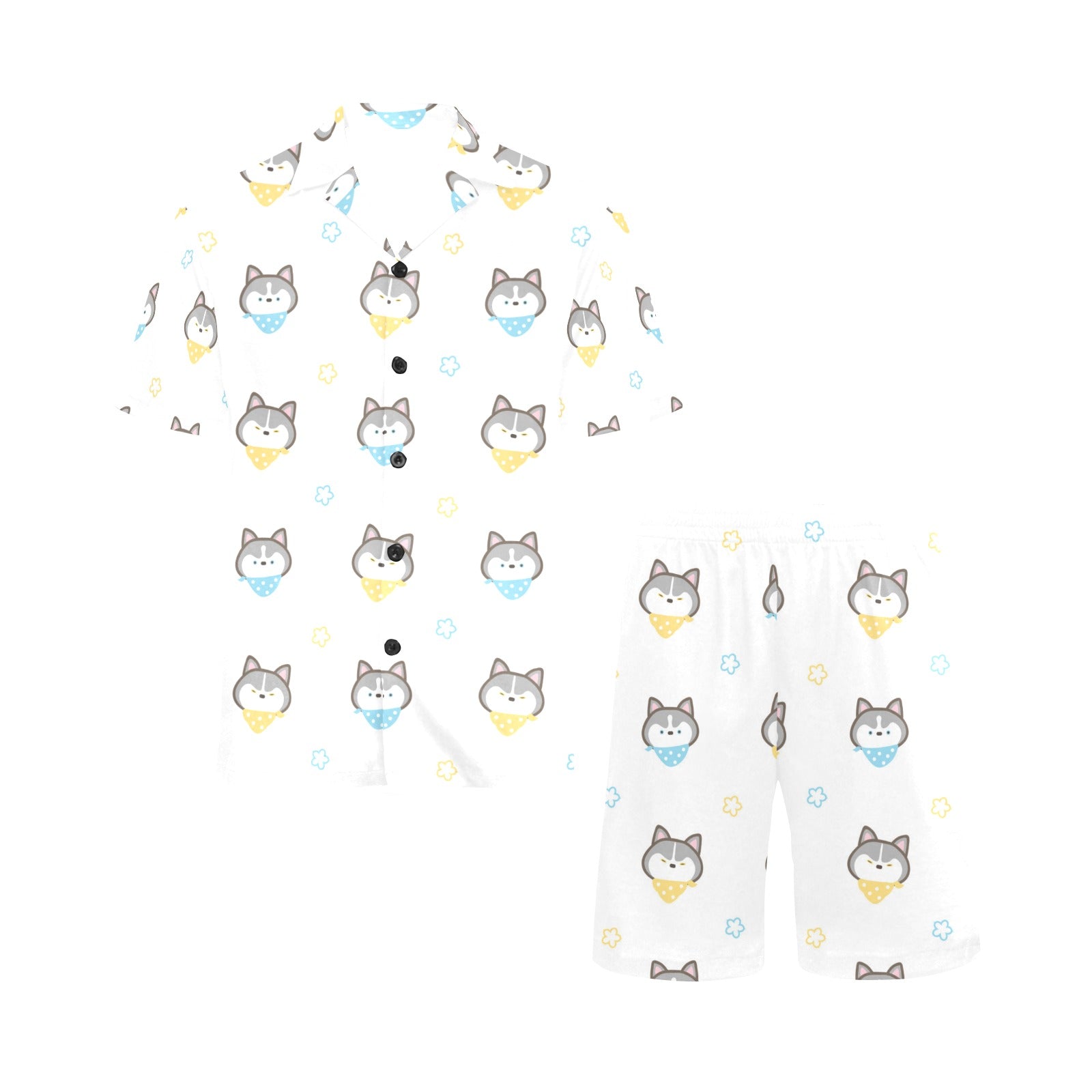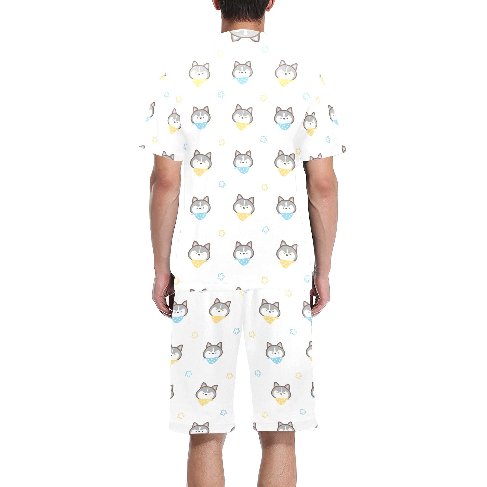 Cute Siberian Husky pattern Men's V-Neck Short Pajama Set