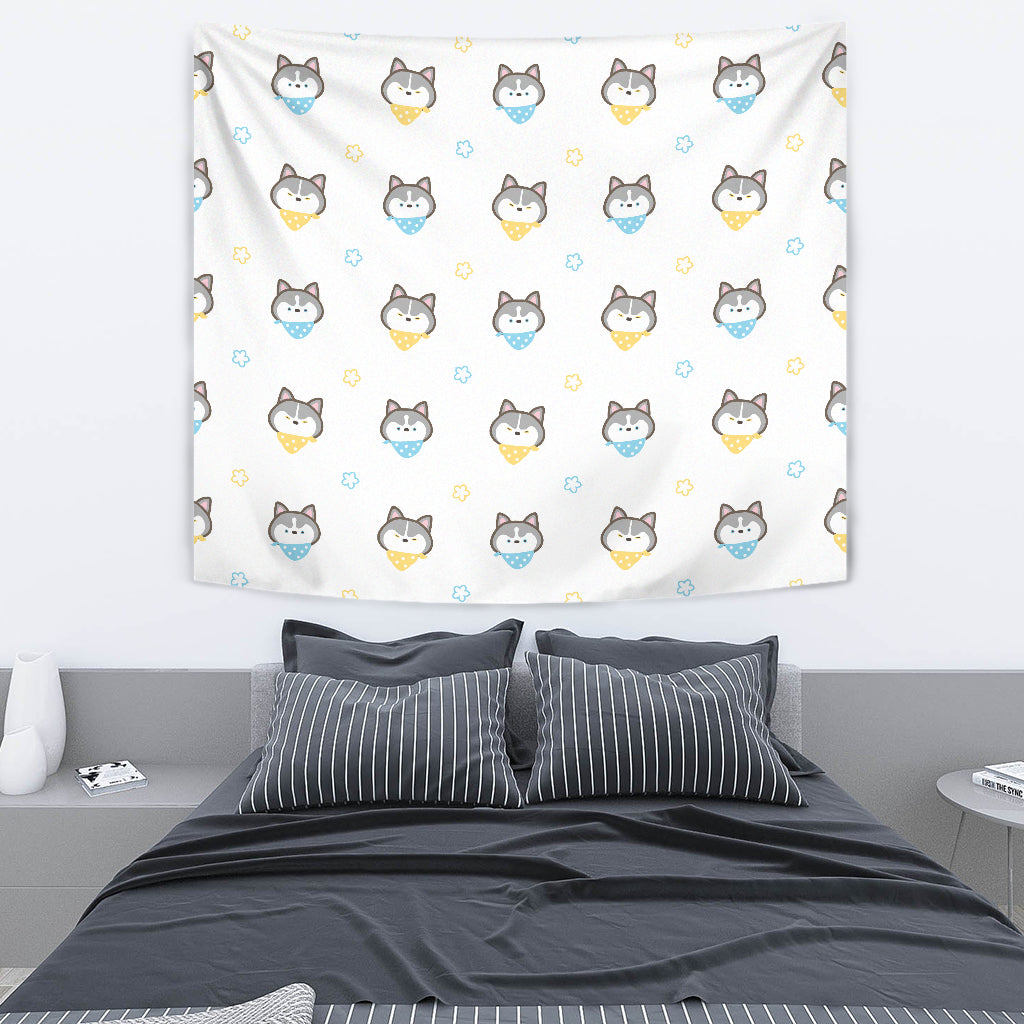 Cute Siberian Husky pattern Tapestry is a uniqued design and limited item. It made to order, hand printed, and sewn with love in our factory.