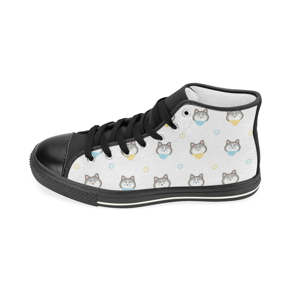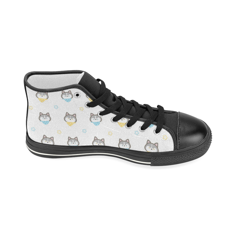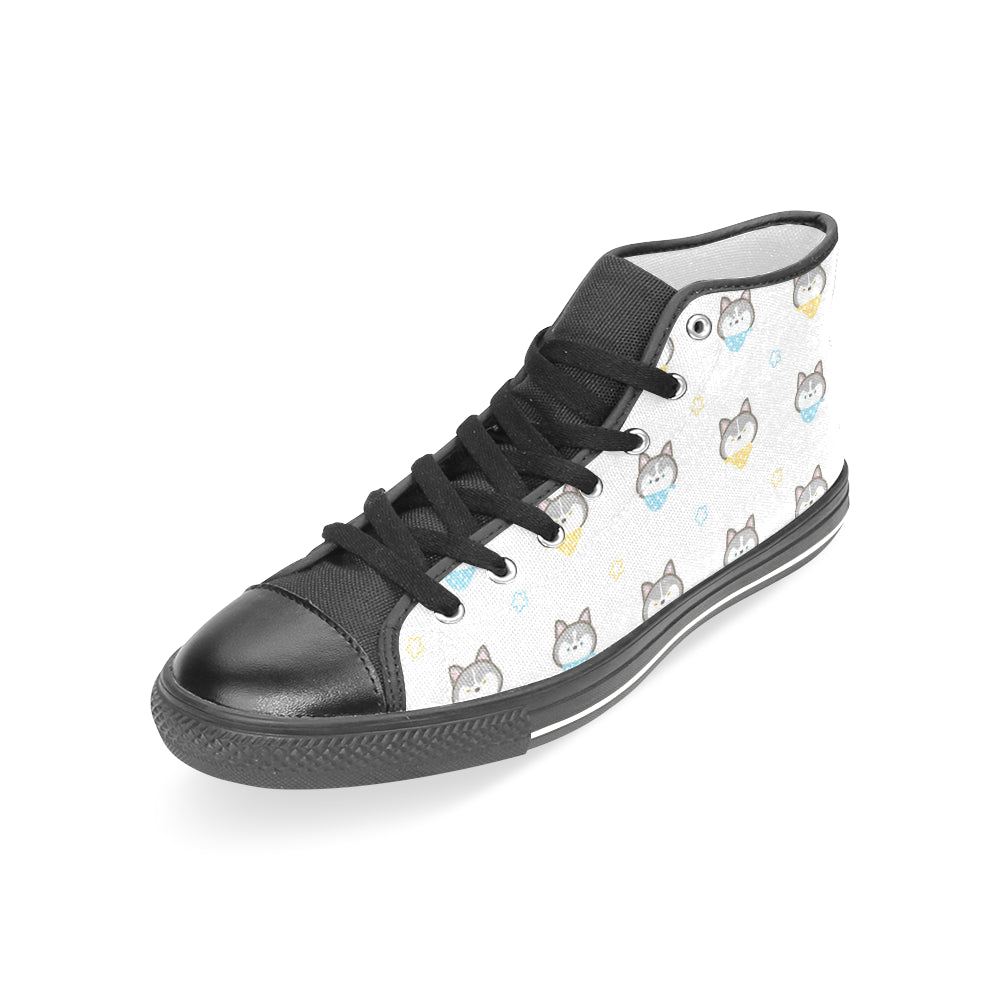 Cute Siberian Husky pattern Women's High Top Canvas Shoes Black