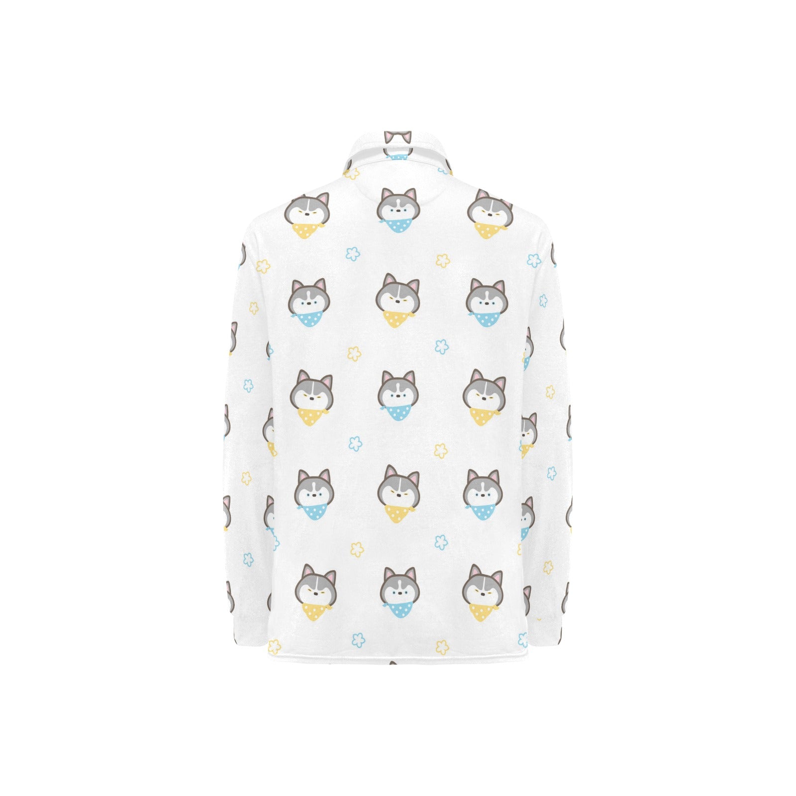 Cute Siberian Husky pattern Women's Long Sleeve Polo Shirt