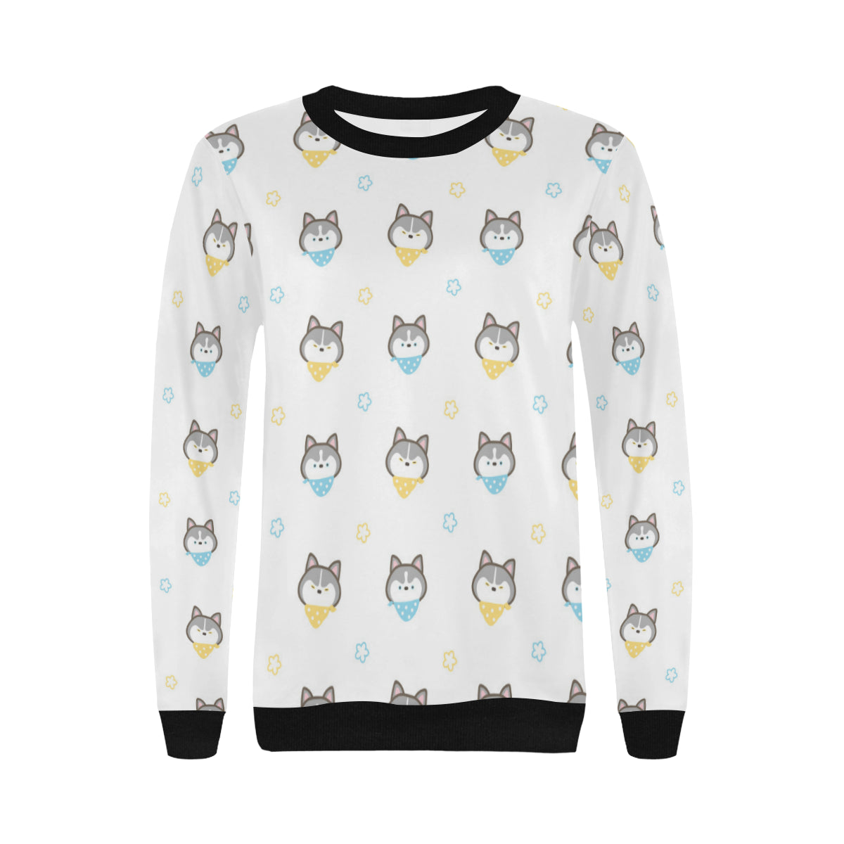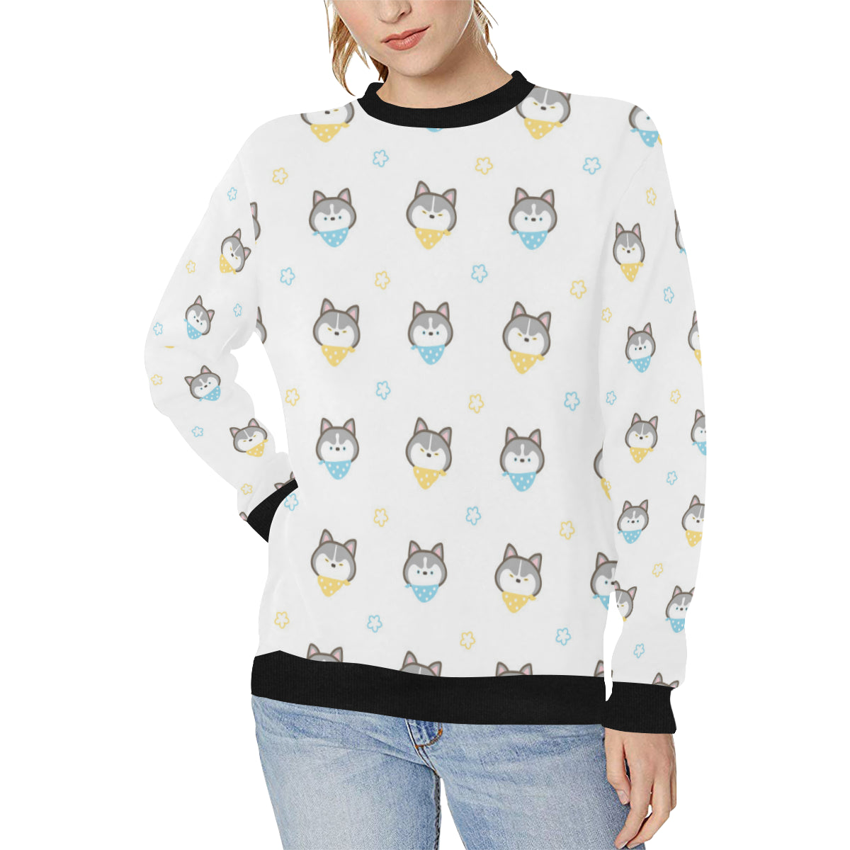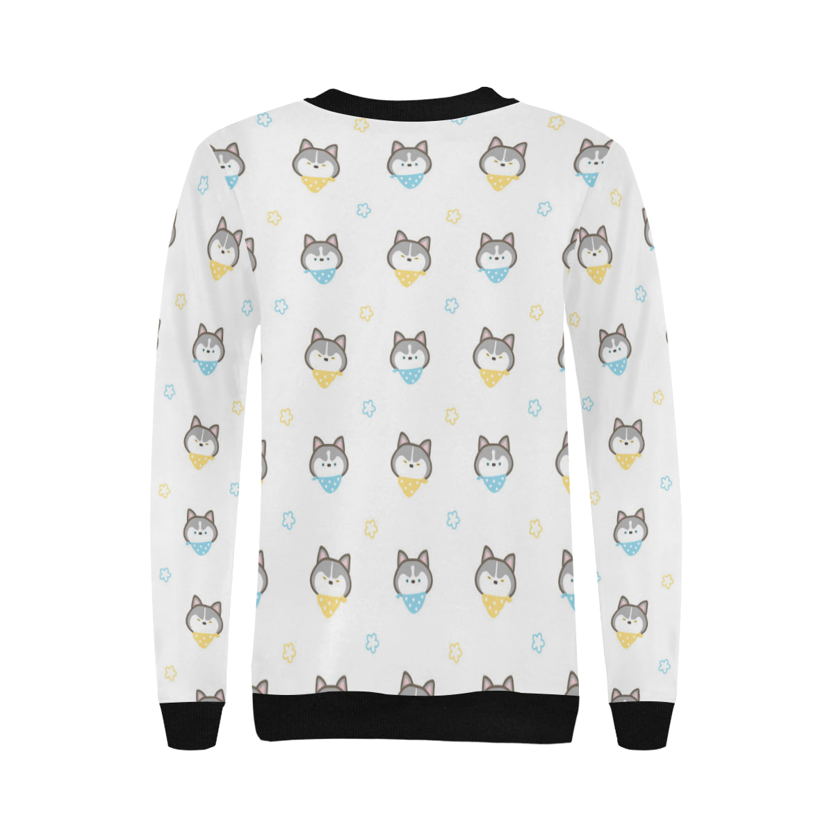 Cute Siberian Husky pattern Women's Crew Neck Sweatshirt
