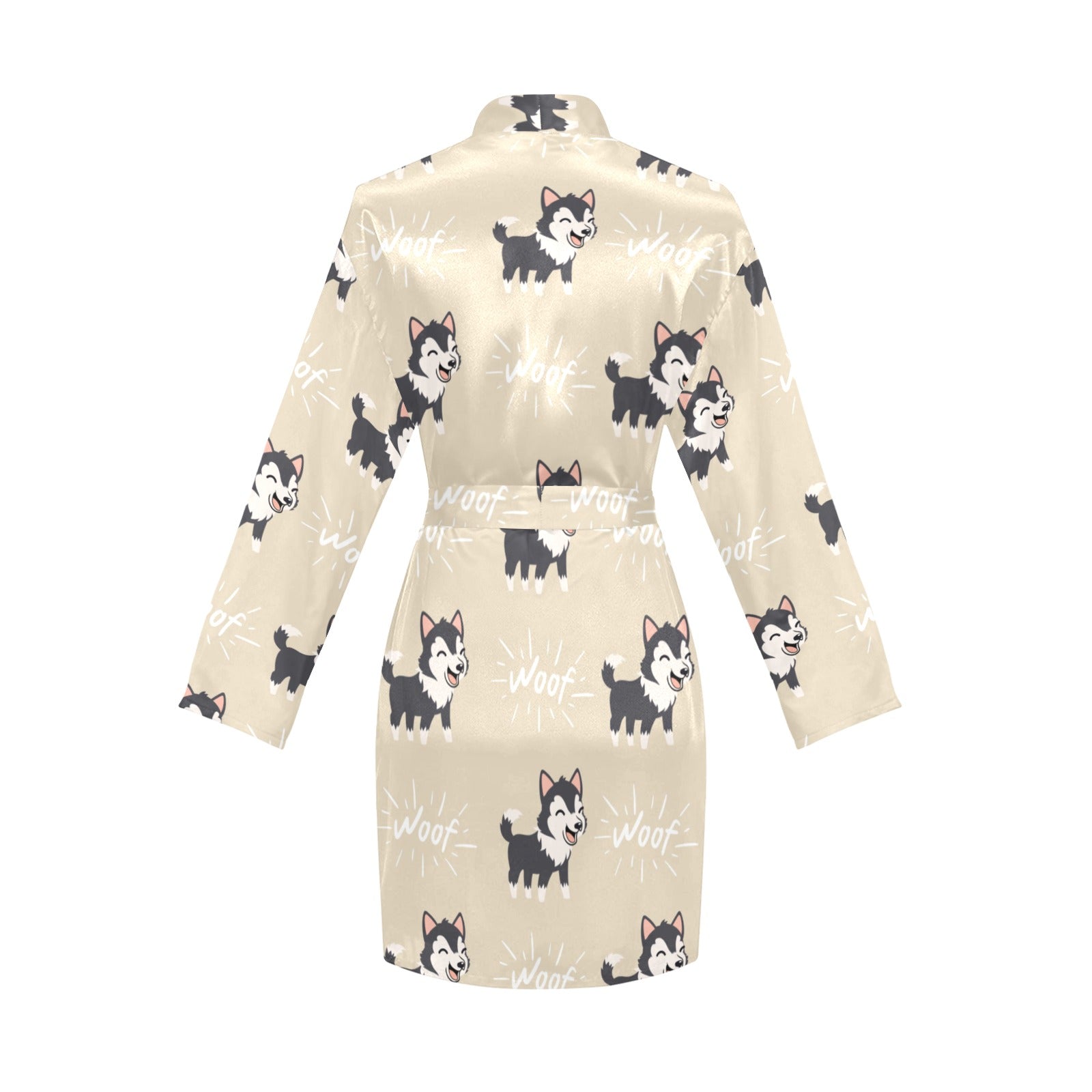 Cute Siberian Husky Women's Long Sleeve Belted Night Robe