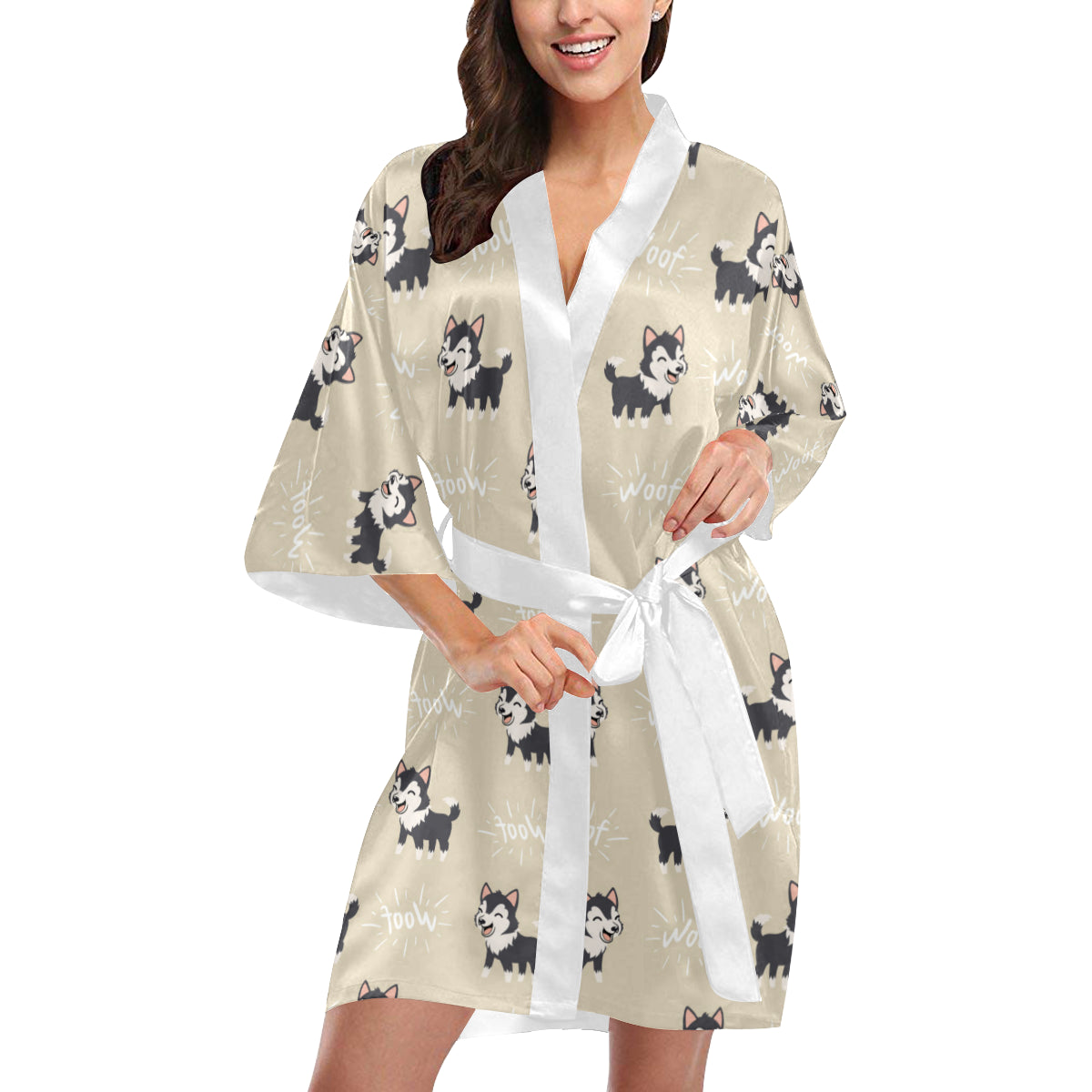 Cute Siberian Husky Women's Short Kimono Robe is a uniqued design and limited item. It made to order, hand printed, and sewn with love in our factory.