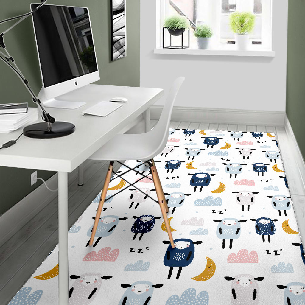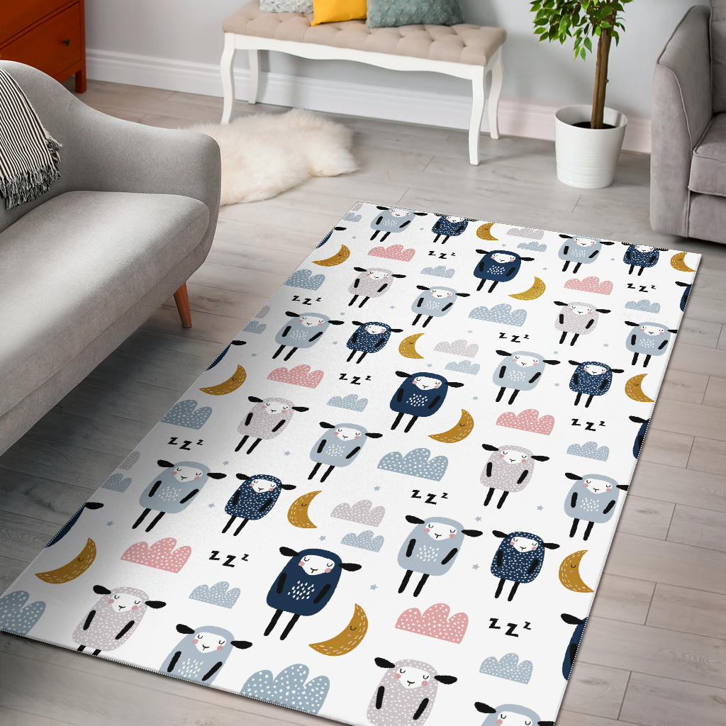 Cute sleeping sheep moon cloud pattern Area Rug is a uniqued design and limited item. It made to order, hand printed, and sewn with love in our factory.