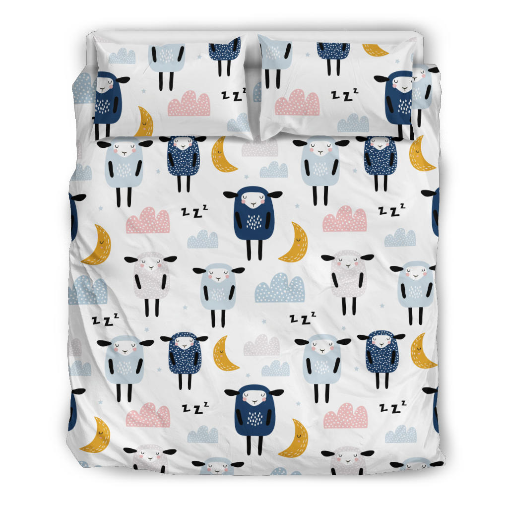 Cute sleeping sheep moon cloud pattern Bedding Set is a uniqued design and limited item. It made to order, hand printed, and sewn with love in our factory.