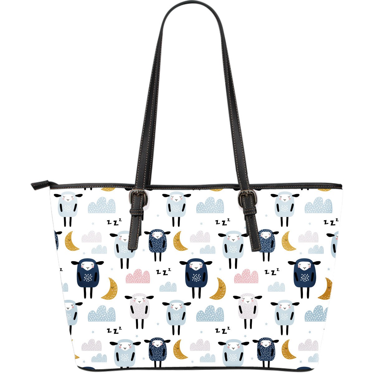 Cute sleeping sheep moon cloud pattern Large Leather Tote Bag is a uniqued design and limited item. It made to order, hand printed, and sewn with love in our factory.