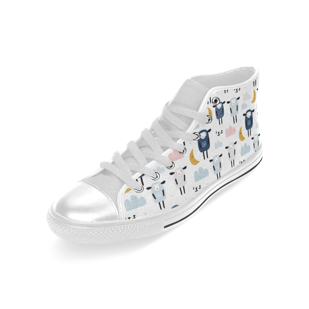 Cute sleeping sheep moon cloud pattern Men's High Top Canvas Shoes White