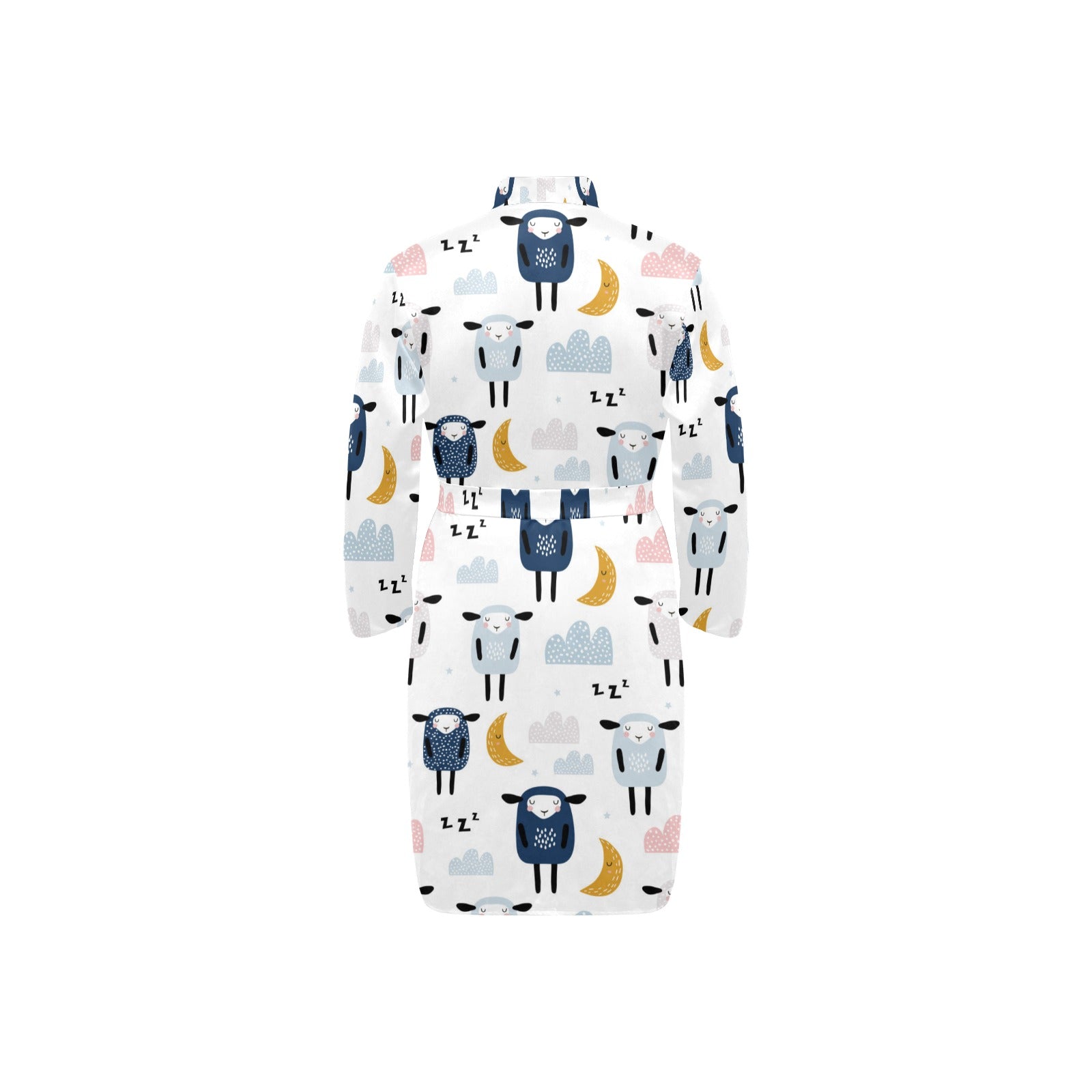 Cute sleeping sheep moon cloud pattern Men's Long Sleeve Belted Night Robe