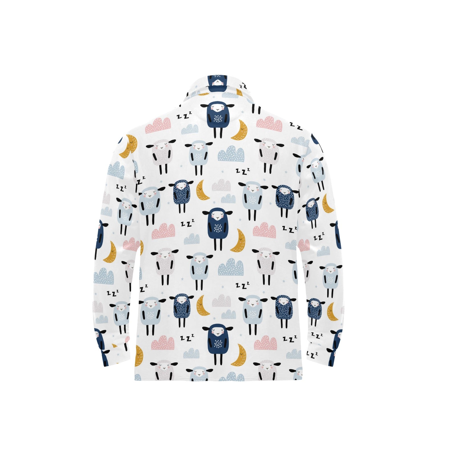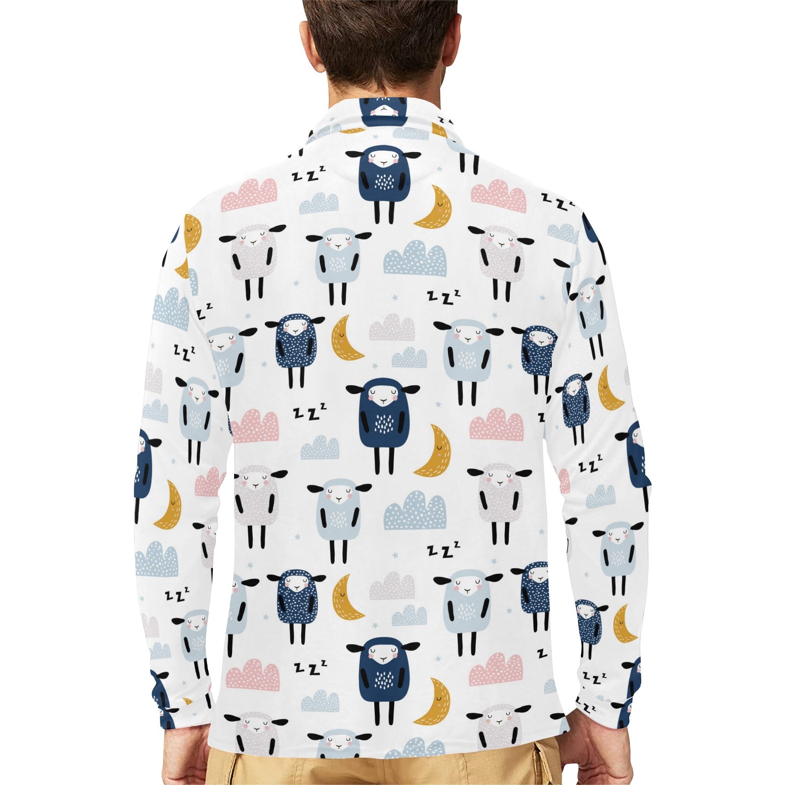 Cute sleeping sheep moon cloud pattern Men's Long Sleeve Polo Shirt