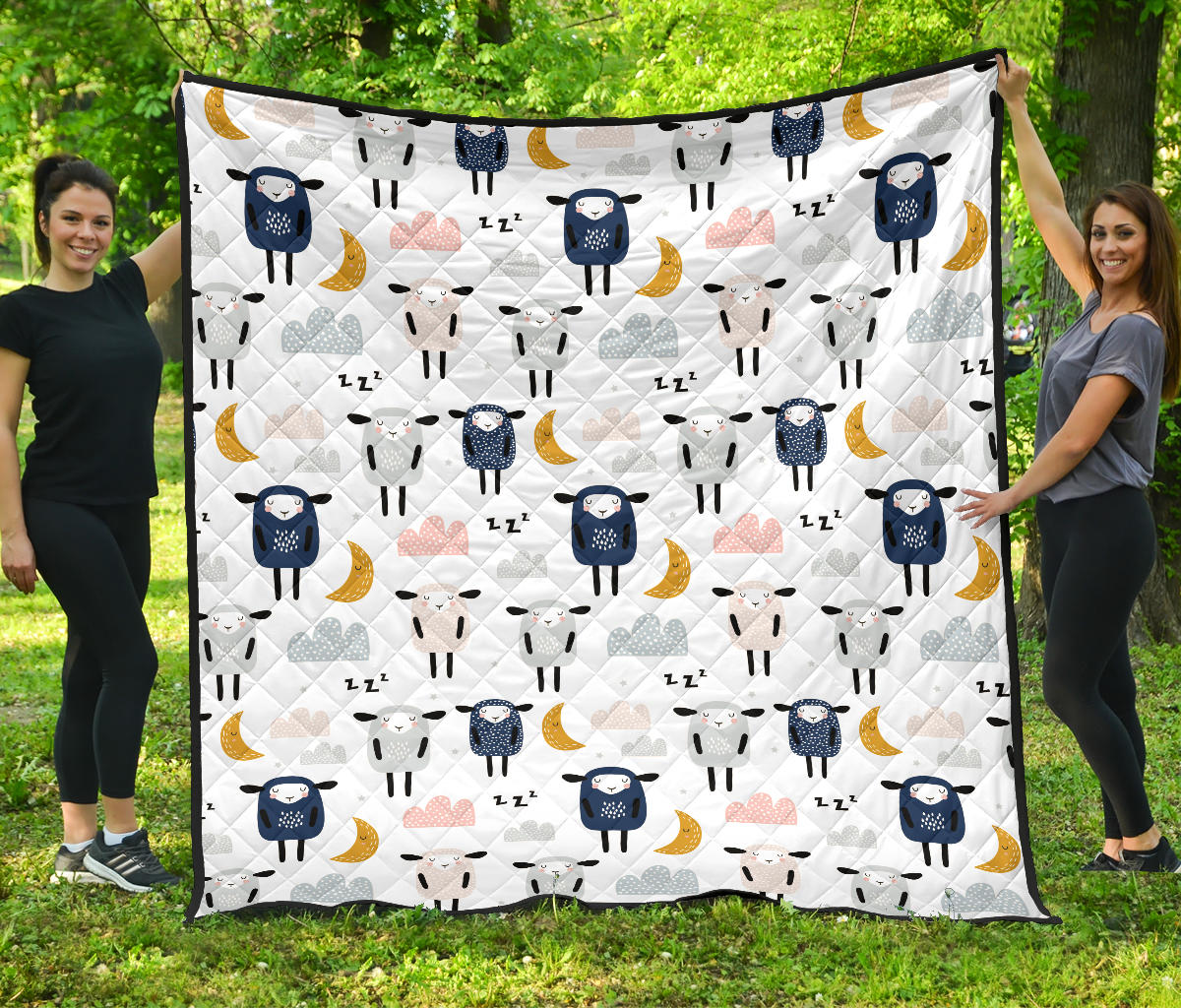 Cute Sleeping Sheep Moon Cloud Pattern Premium Quilt is a uniqued design and limited item. It made to order, hand printed, and sewn with love in our factory.