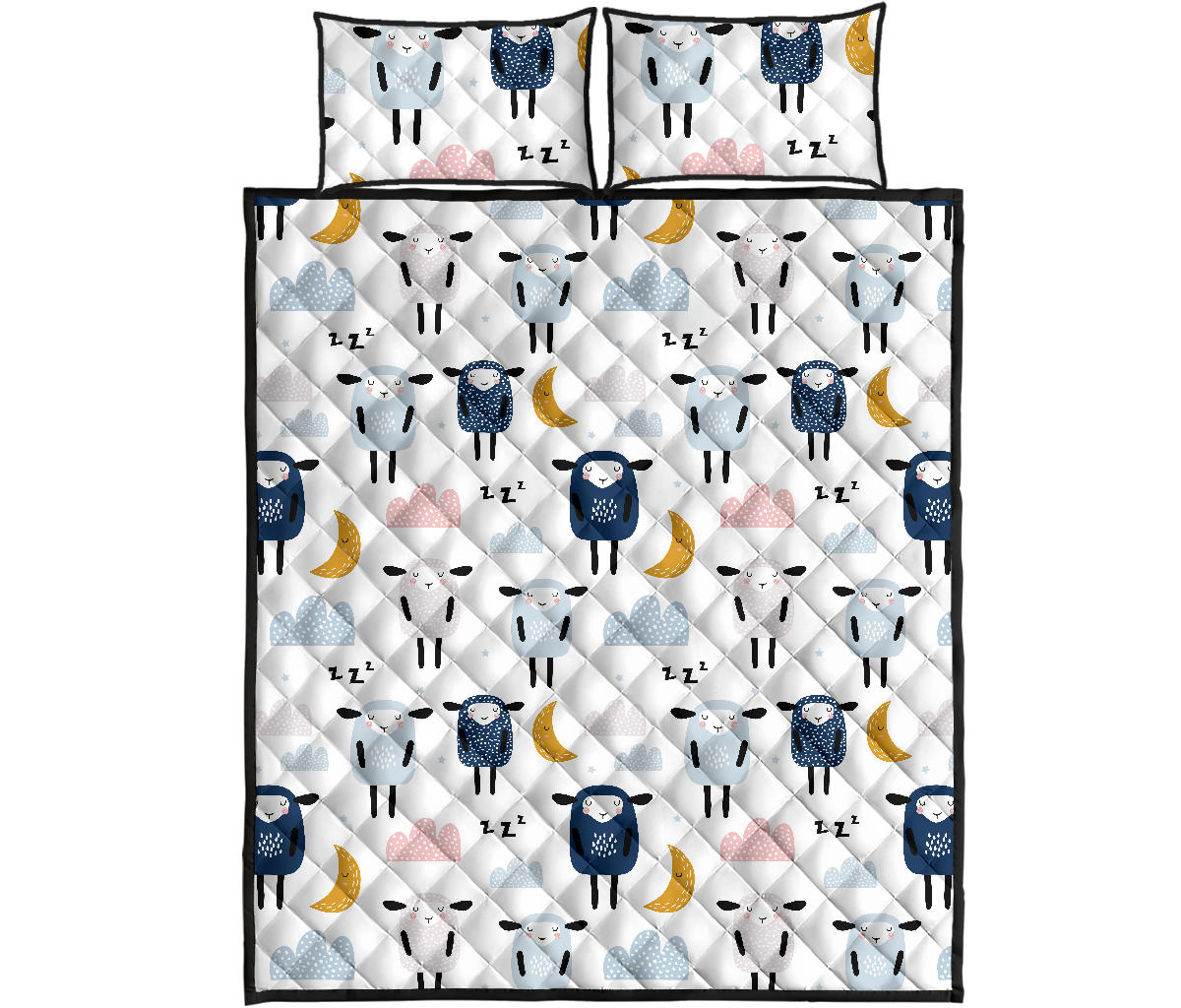 Cute sleeping sheep moon cloud pattern Quilt Bed Set