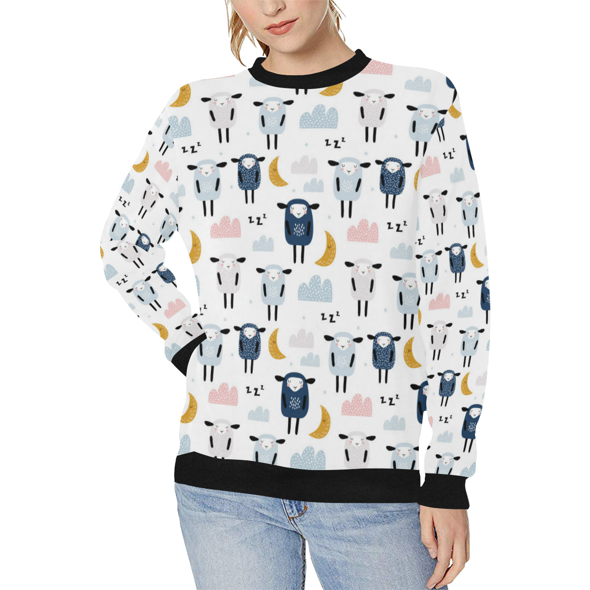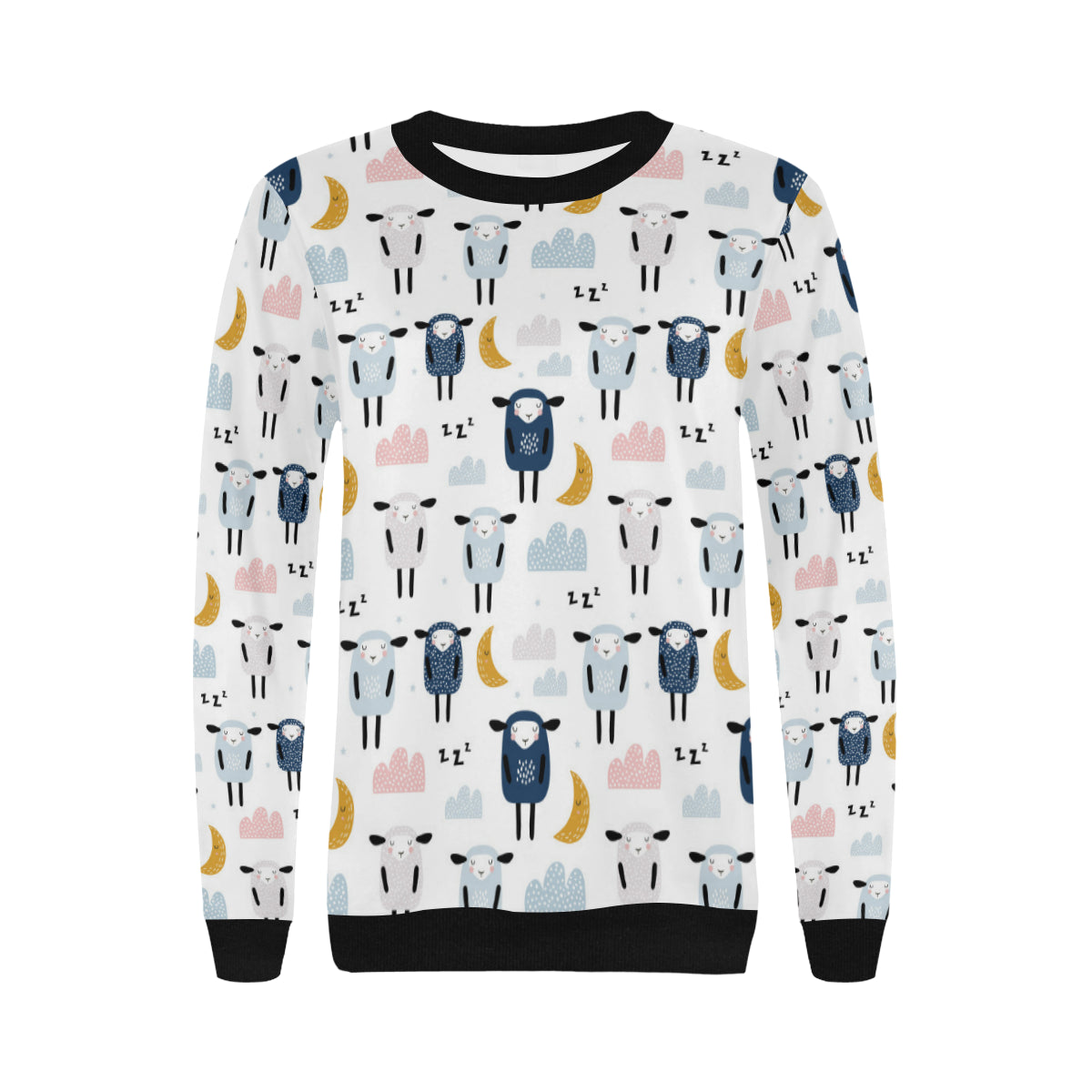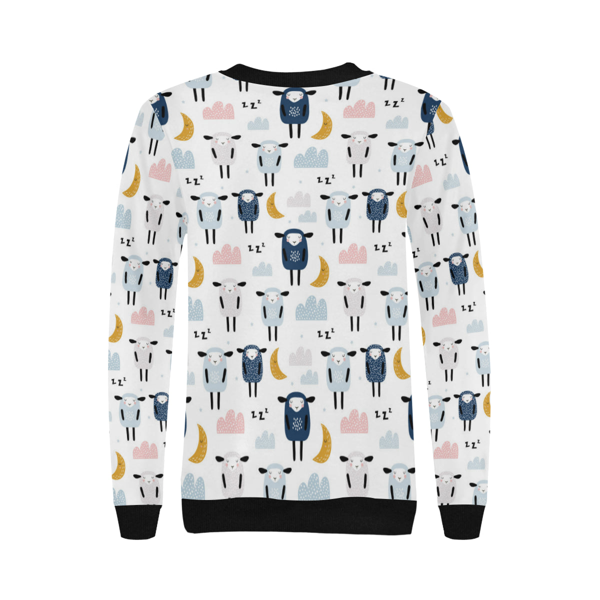 Cute sleeping sheep moon cloud pattern Women's Crew Neck Sweatshirt