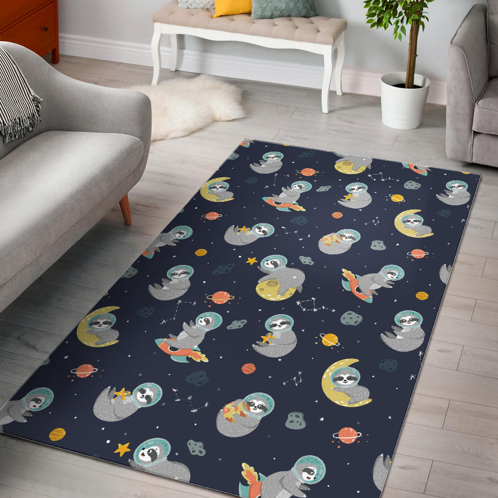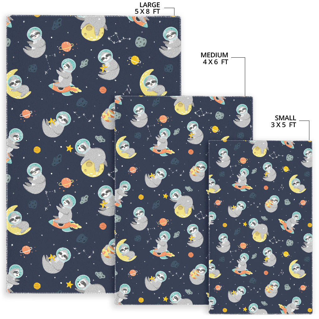 Cute sloth astronaut star planet rocket pattern Area Rug is a uniqued design and limited item. It made to order, hand printed, and sewn with love in our factory.