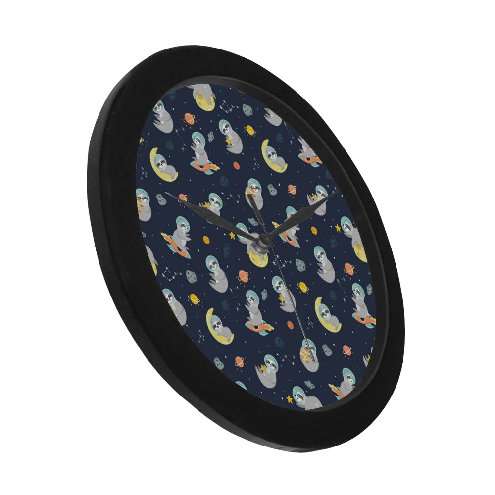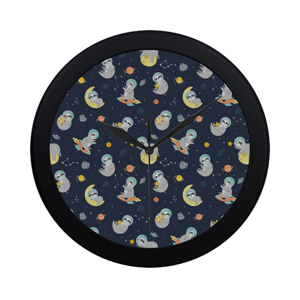 Cute sloth astronaut star planet rocket pattern Elegant Black Wall Clock