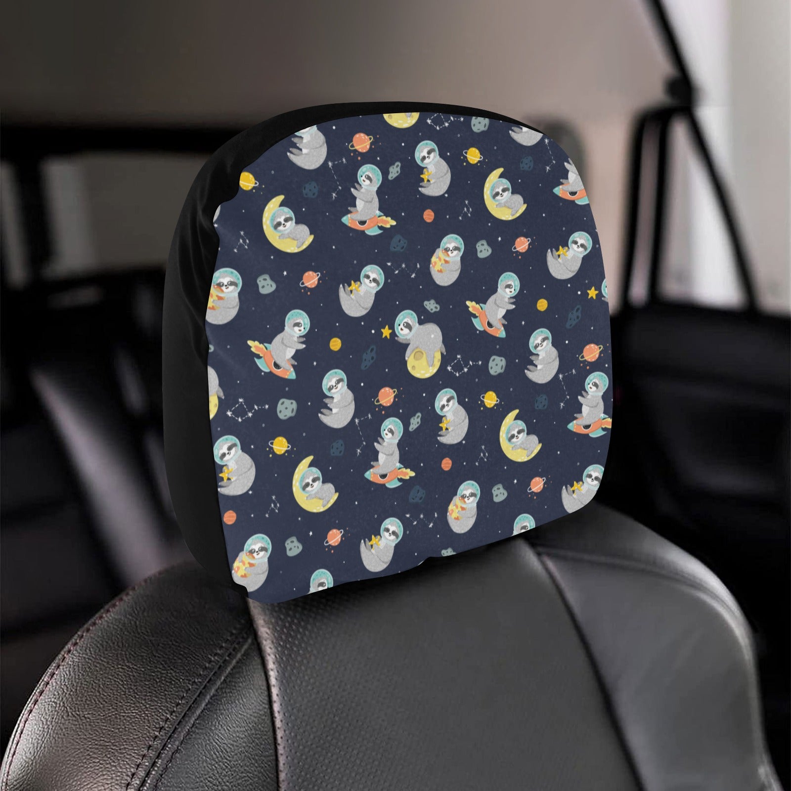 Cute sloth astronaut star planet rocket pattern Car Headrest Cover