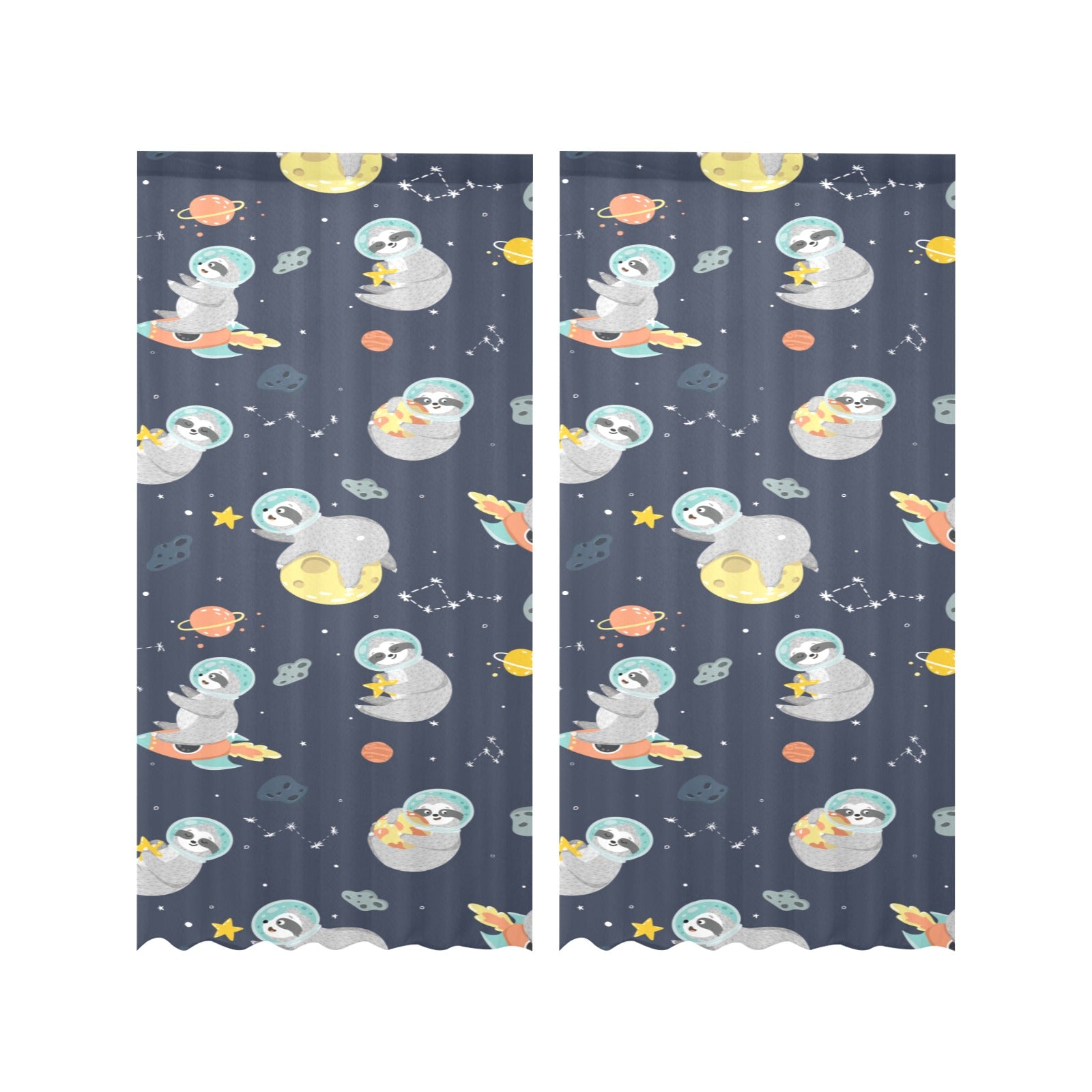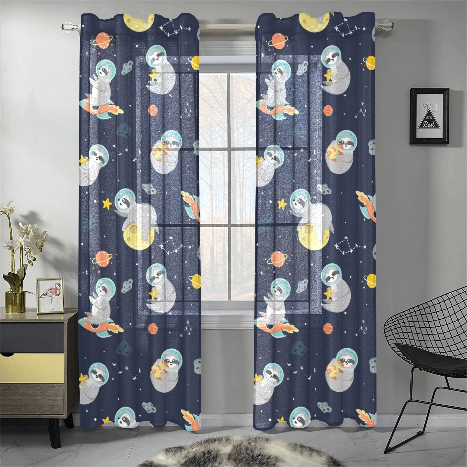 Cute sloth astronaut star planet rocket pattern Gauze Curtain