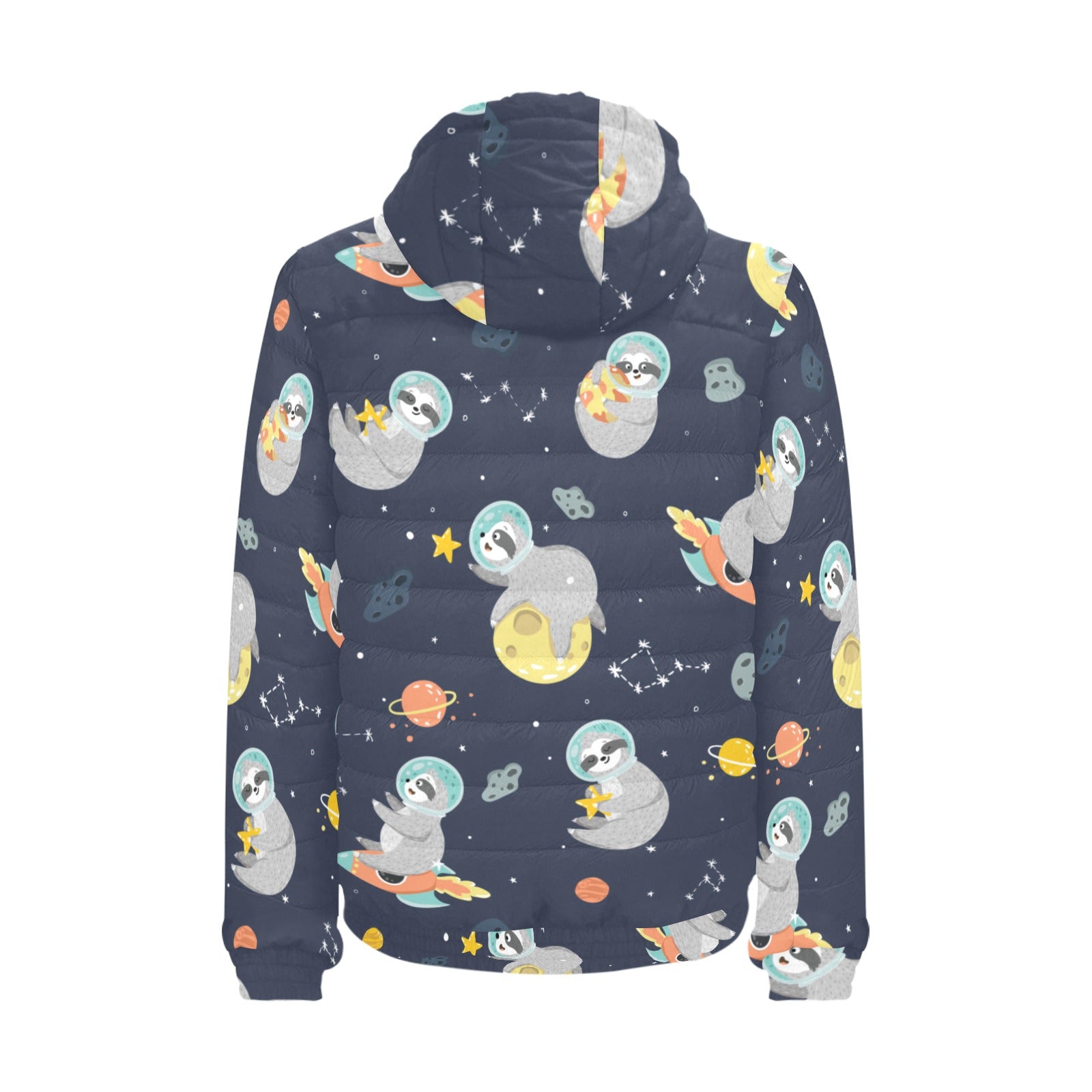 Cute sloth astronaut star planet rocket pattern Men's Padded Hooded Jacket