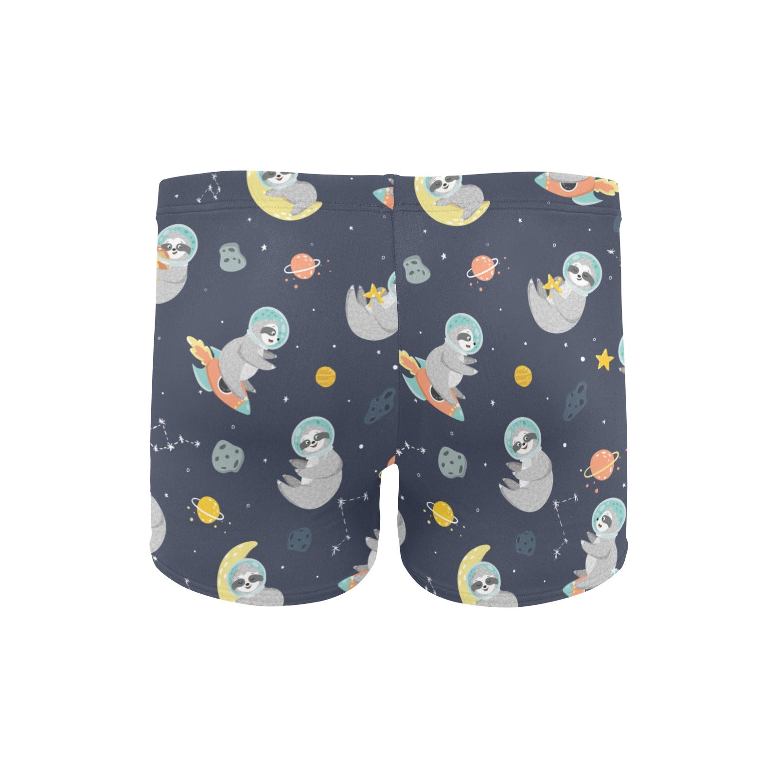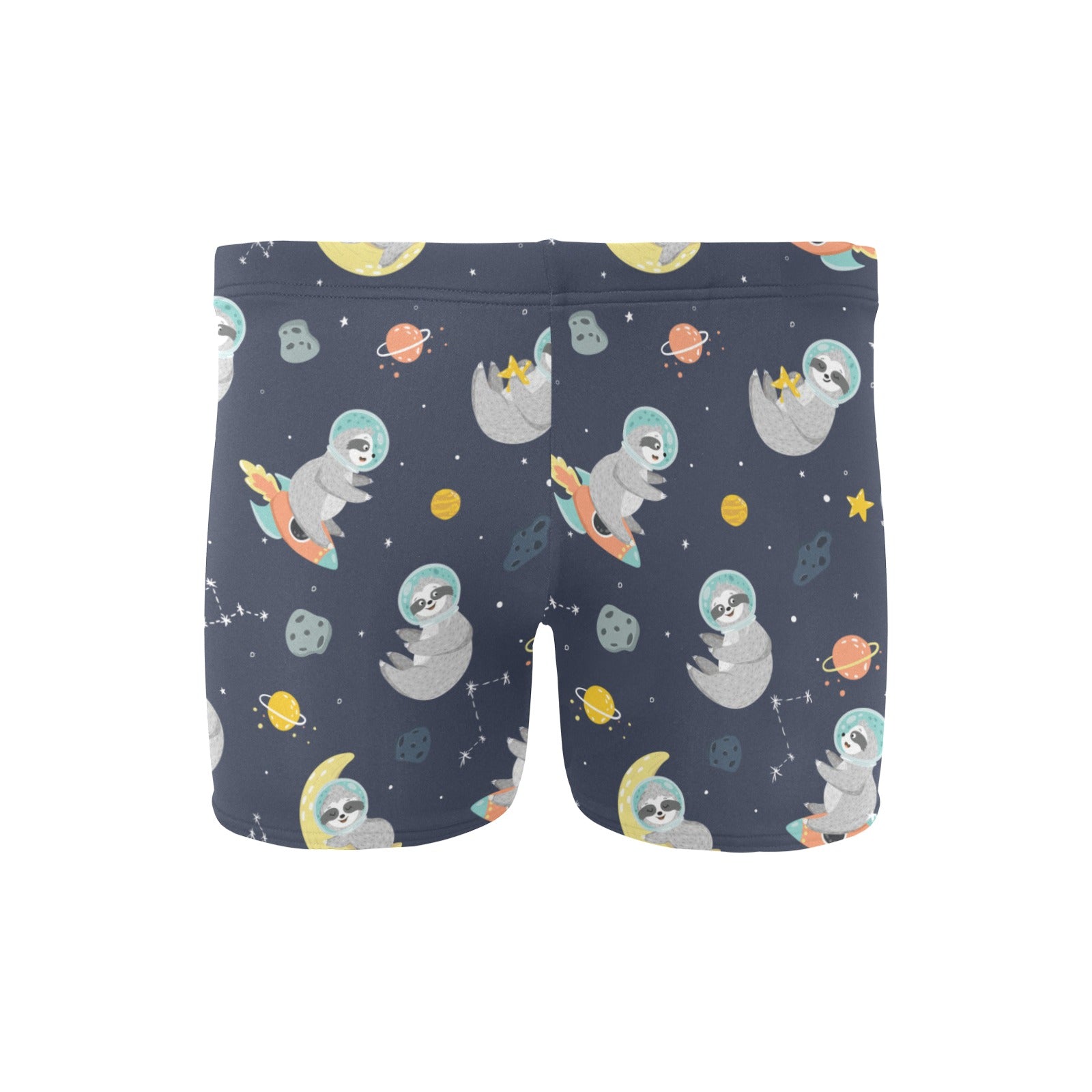 Cute sloth astronaut star planet rocket pattern Men's Swimming Trunks