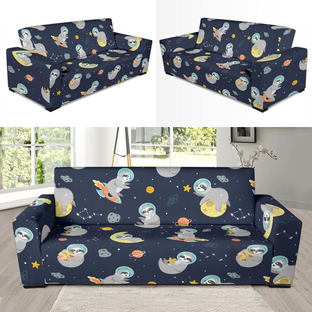 Cute sloth astronaut star planet rocket pattern Sofa Slipcover is a uniqued design and limited item. It made to order, hand printed, and sewn with love in our factory.