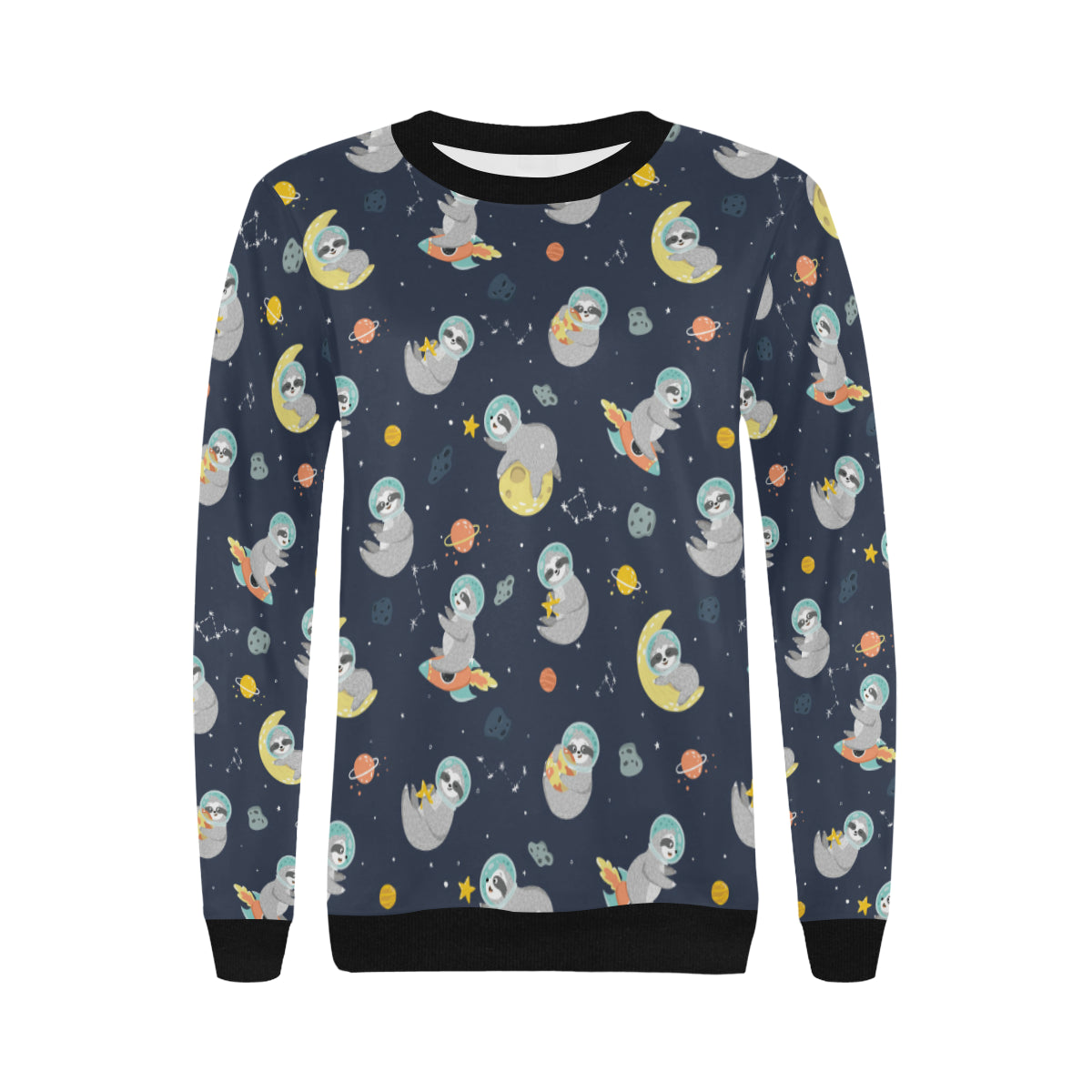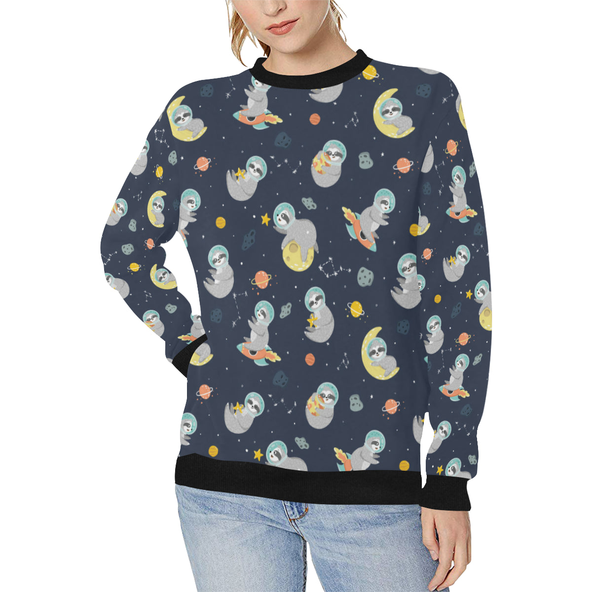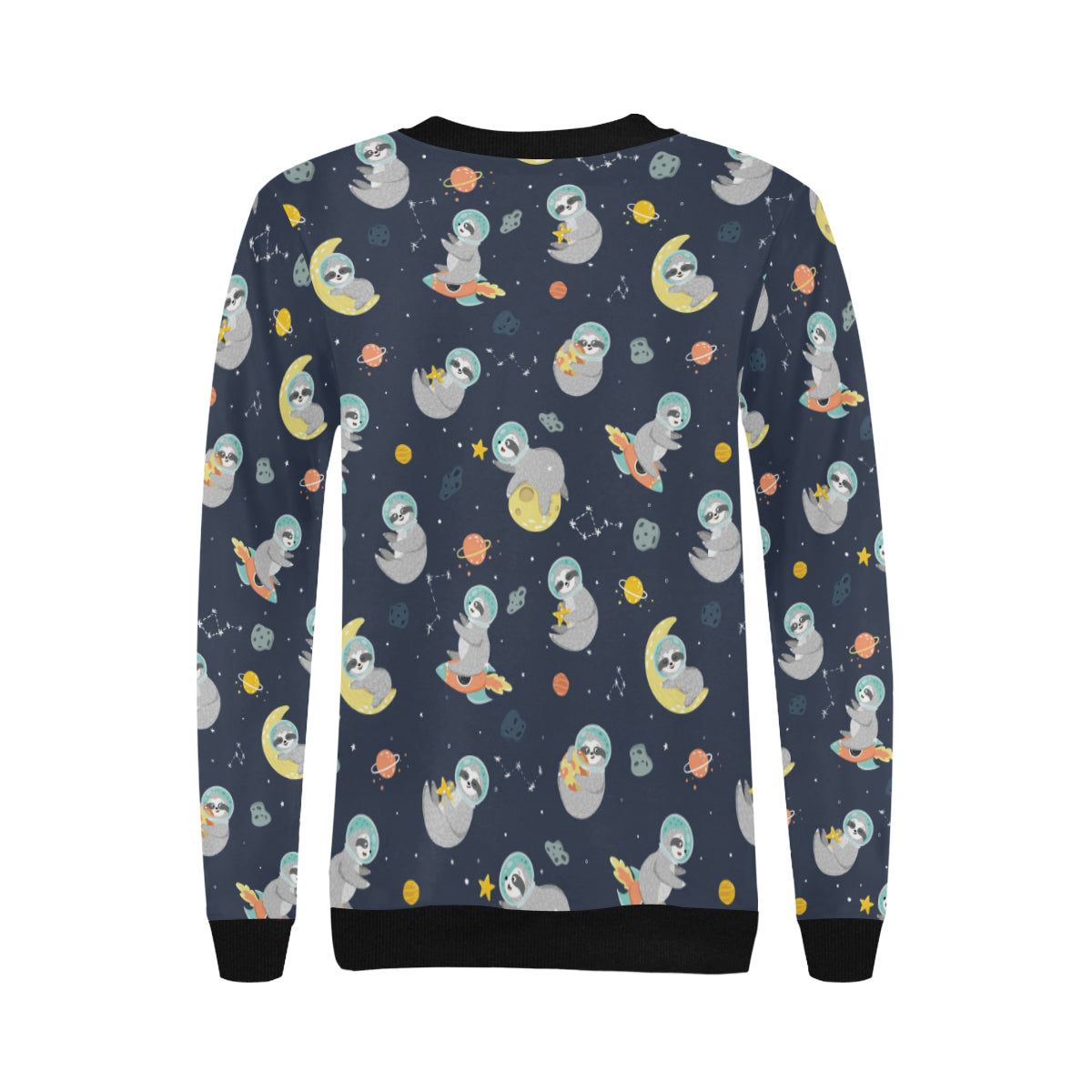 Cute sloth astronaut star planet rocket pattern Women's Crew Neck Sweatshirt