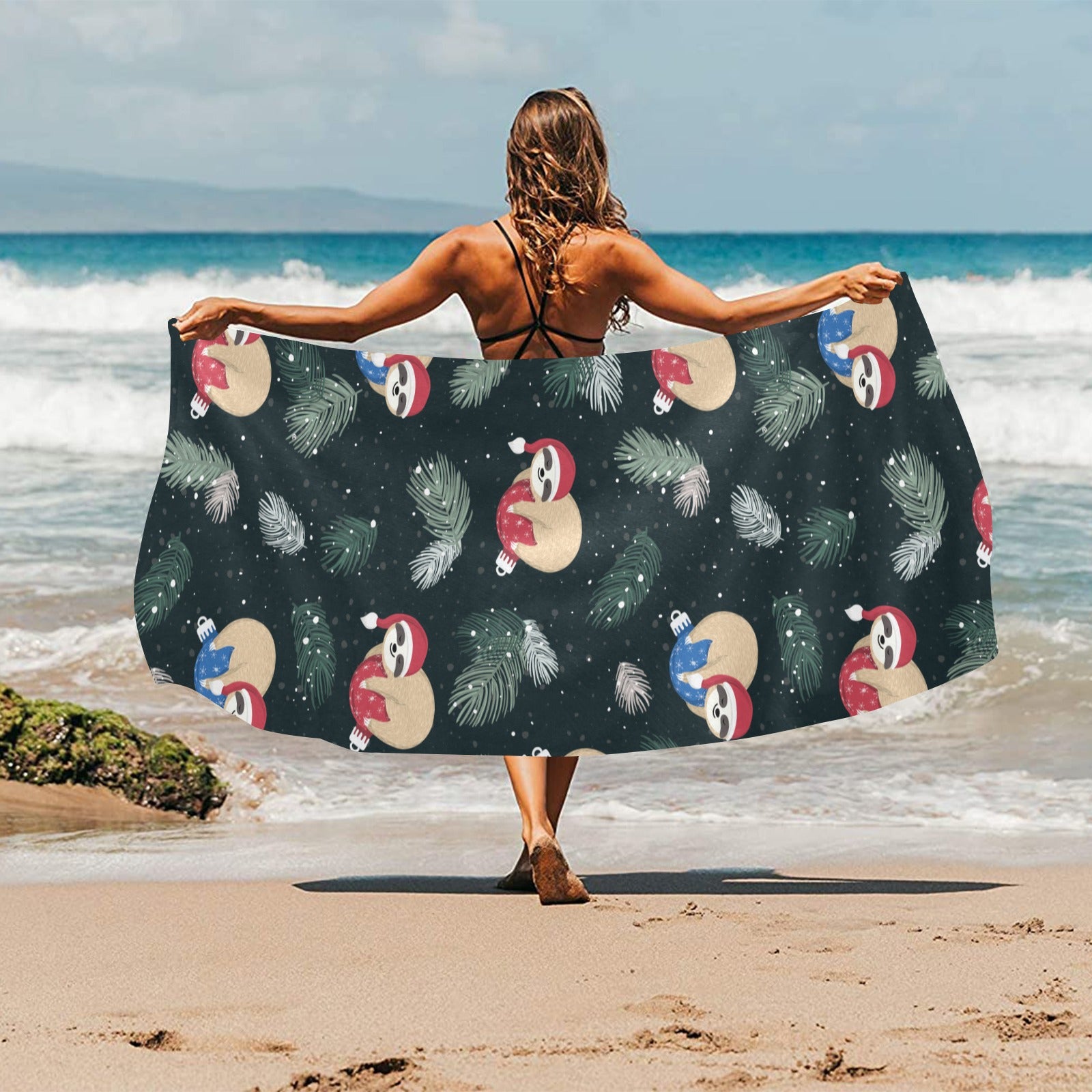 Cute sloths sleeping christmas ball santa hat patt Beach Towel