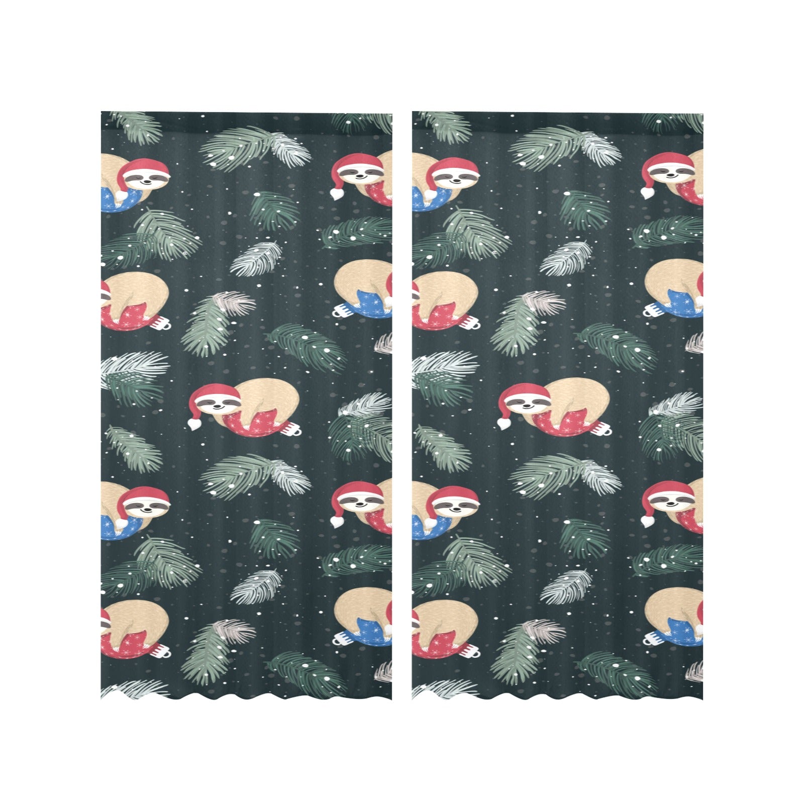 Cute sloths sleeping christmas ball santa hat patt Gauze Curtain