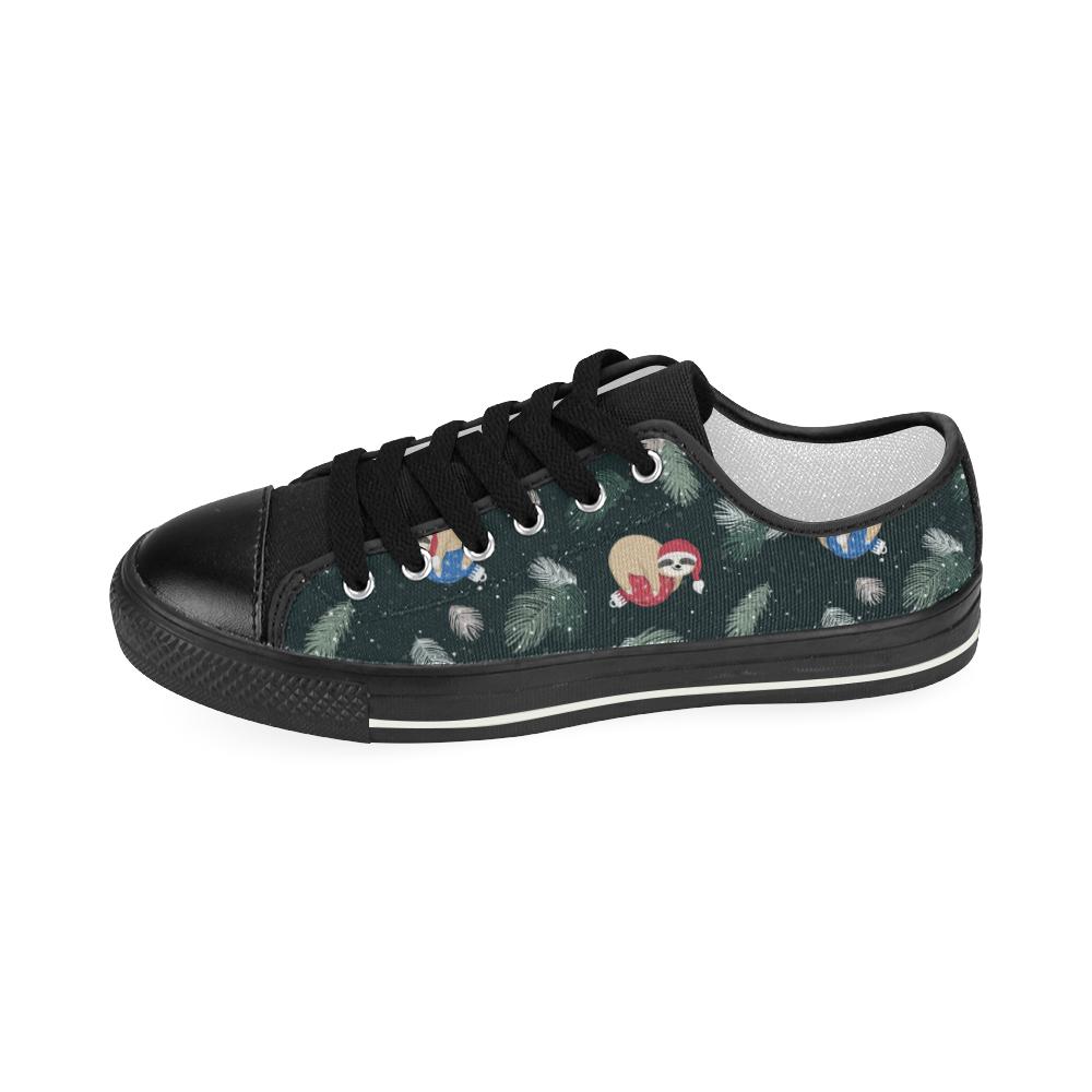 Cute sloths sleeping christmas ball santa hat patt Kids' Boys' Girls' Low Top Canvas Shoes Black